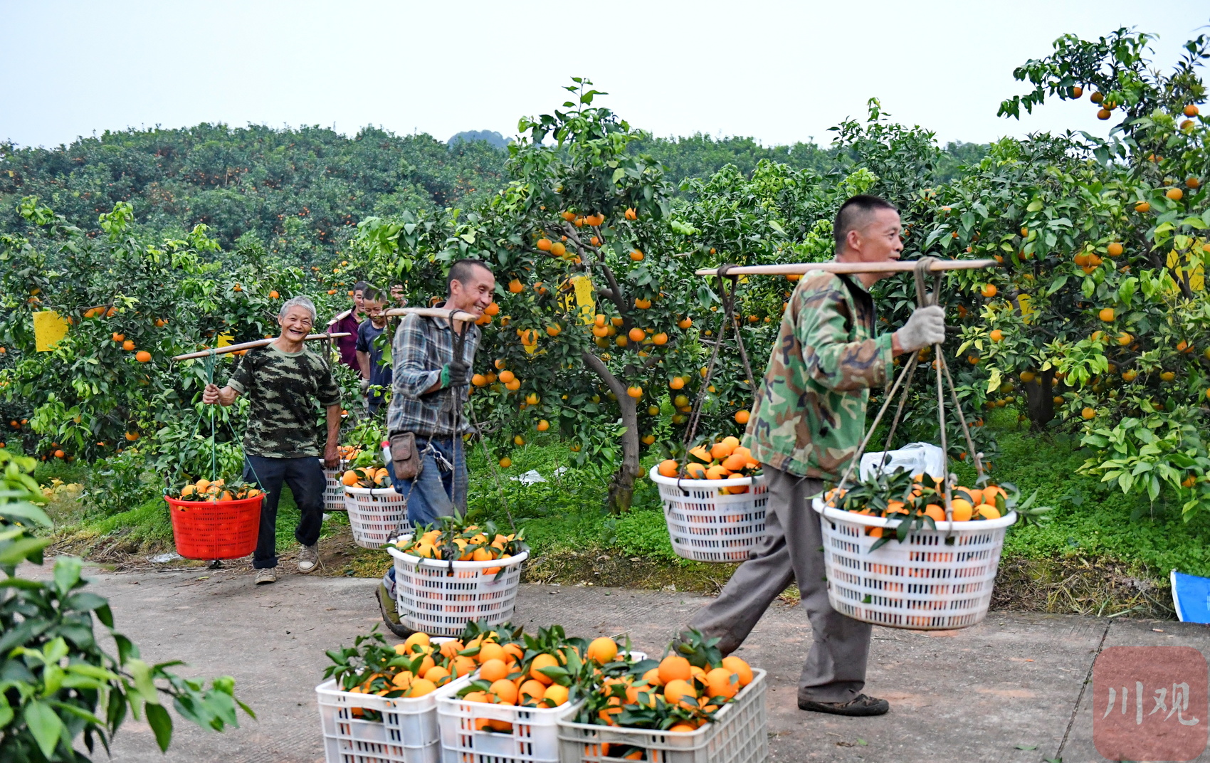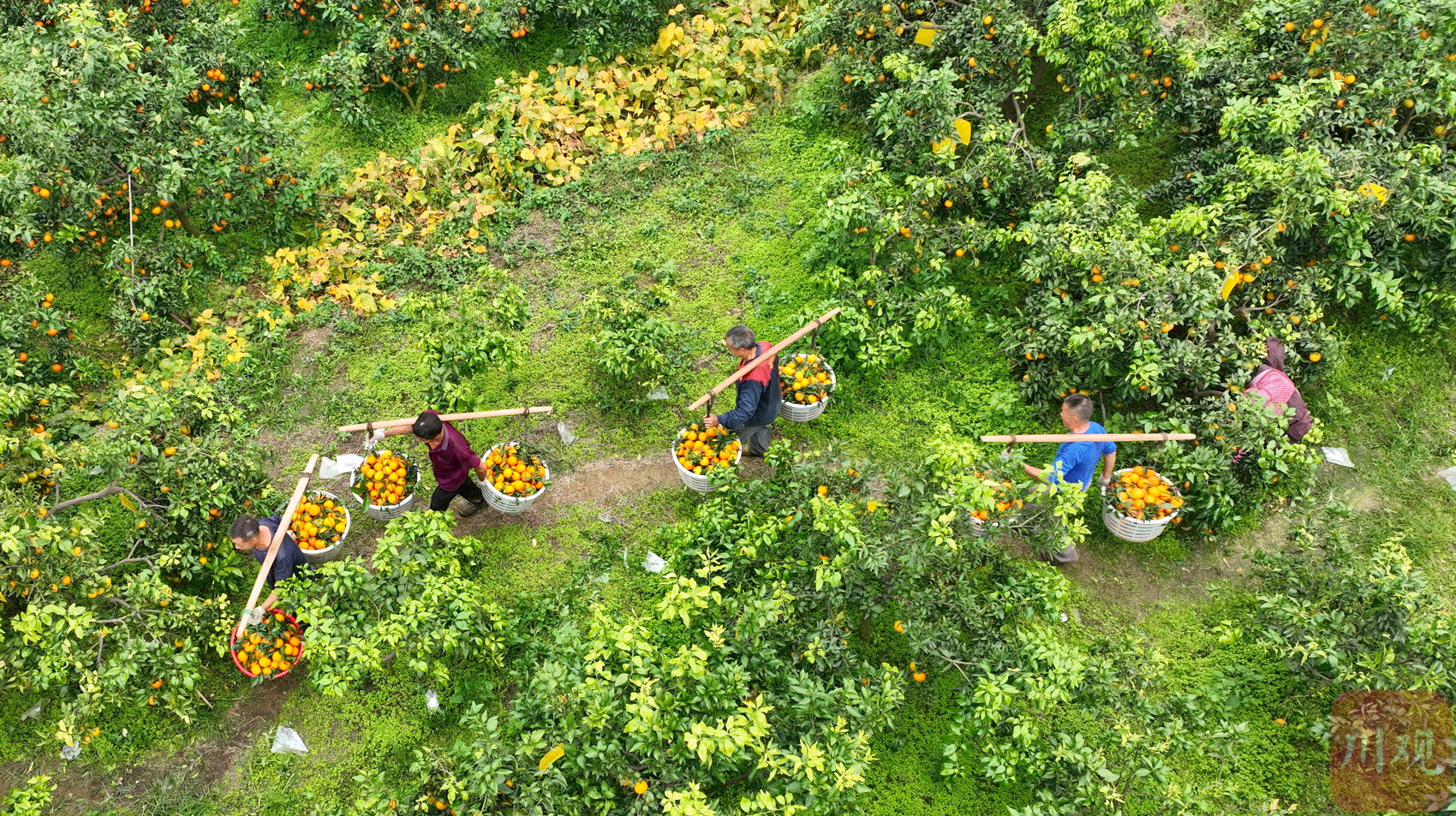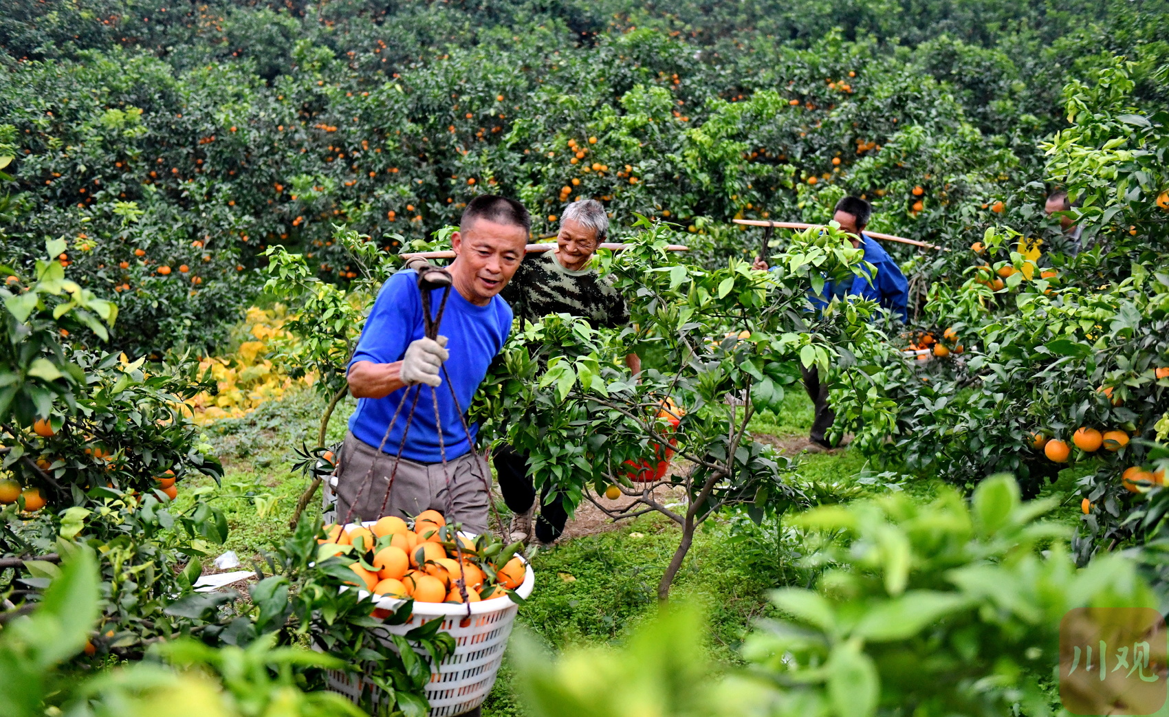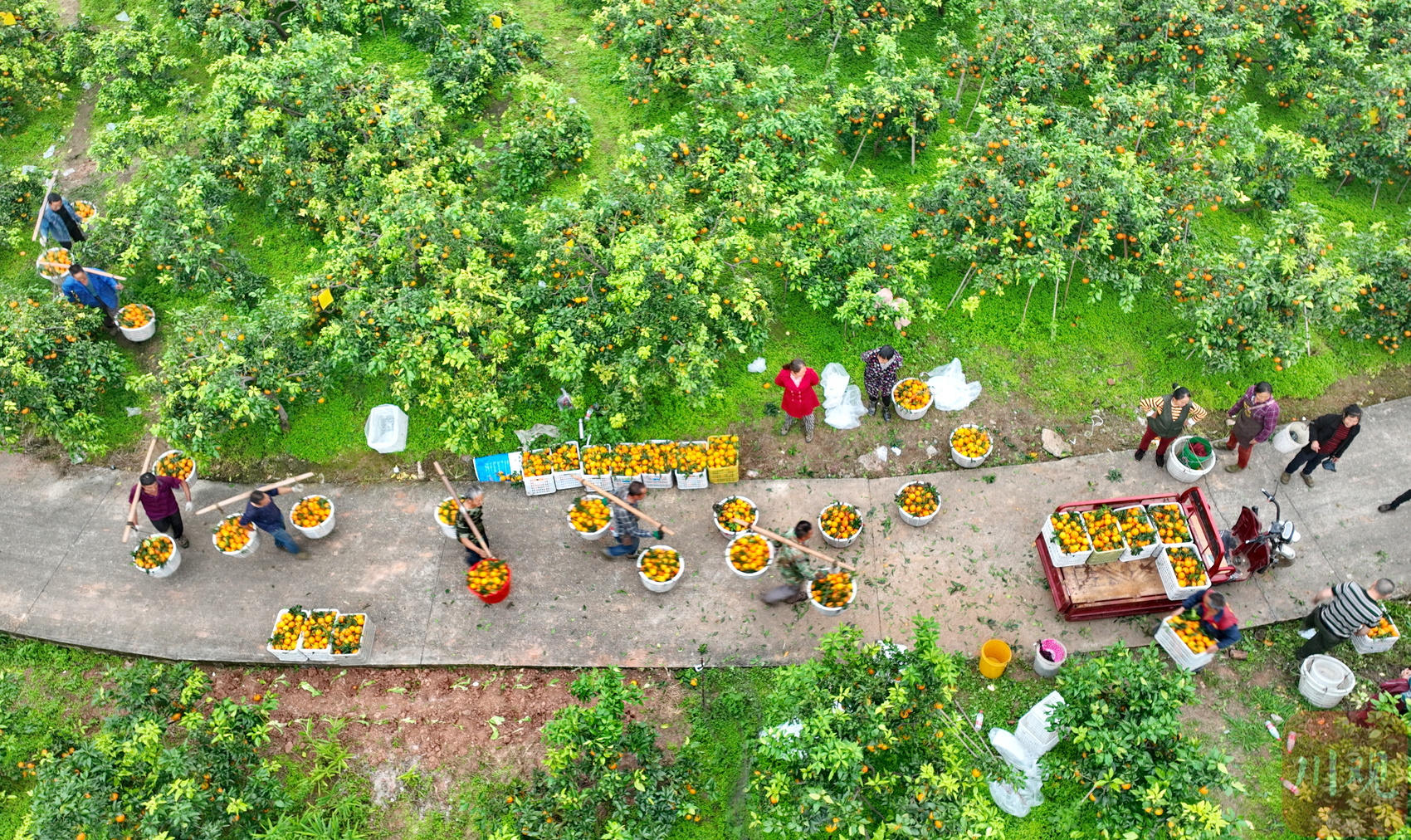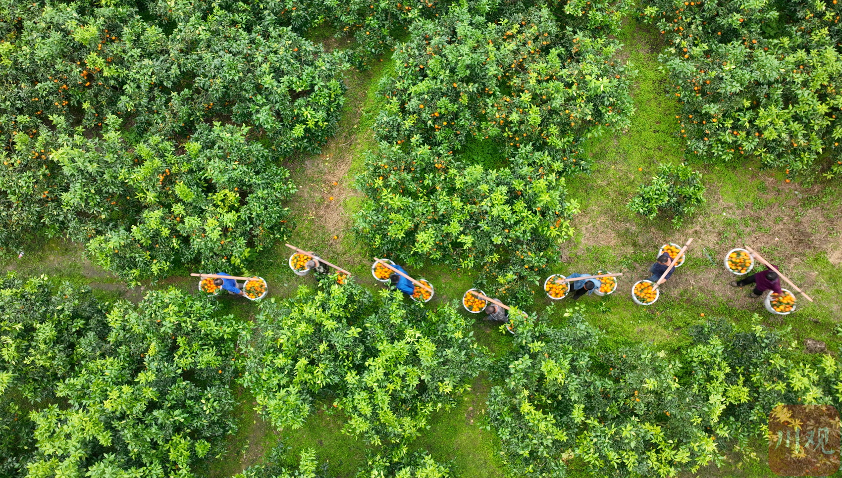 在成都市双流区永安镇梨园村柑橘种植基地,工作人员正忙着转运刚采摘的柑橘。
