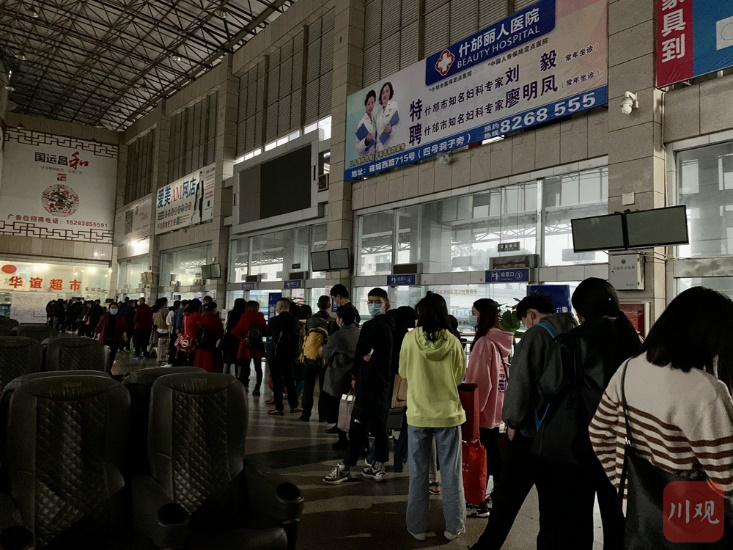 15日下午5点半什邡安顺汽车站站内等待乘坐摆渡车的旅客