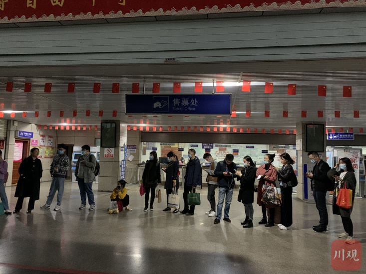 15日下午5点左右,记者前往安顺汽车站乘坐摆渡车返回成都,不料此时候车大厅已大排长龙,排在前方的乘客告诉记者,“刚刚工作人员已经来数过人了,我这就是最后一个,后面的人已经无车可坐,你们赶快想其他办法”。
