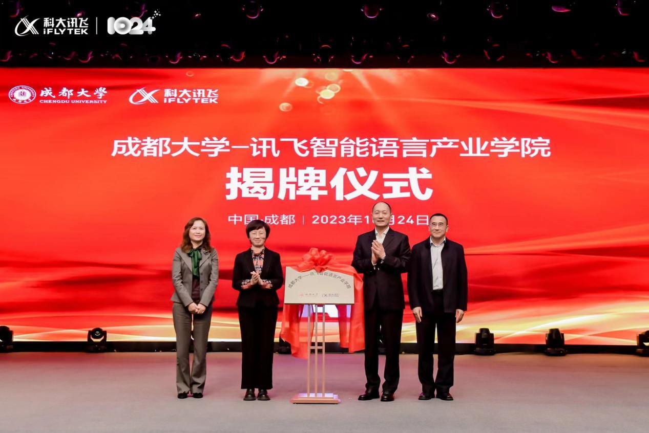 成都大学与科大讯飞联合打造“成都大学-讯飞智能语言产业学院”,并在峰会上举行了揭牌仪式,将以“1个应用研究院,3大合作中心,1个示范基地”为核心目标,进一步推动人工智能语言服务应用场景落地,助力成都成为西南地区智能语言产业发展的创新策源地。