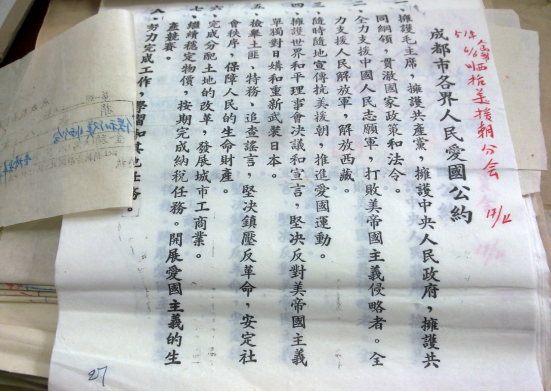 成都市各界人民爱国公约。 四川省档案馆供图
