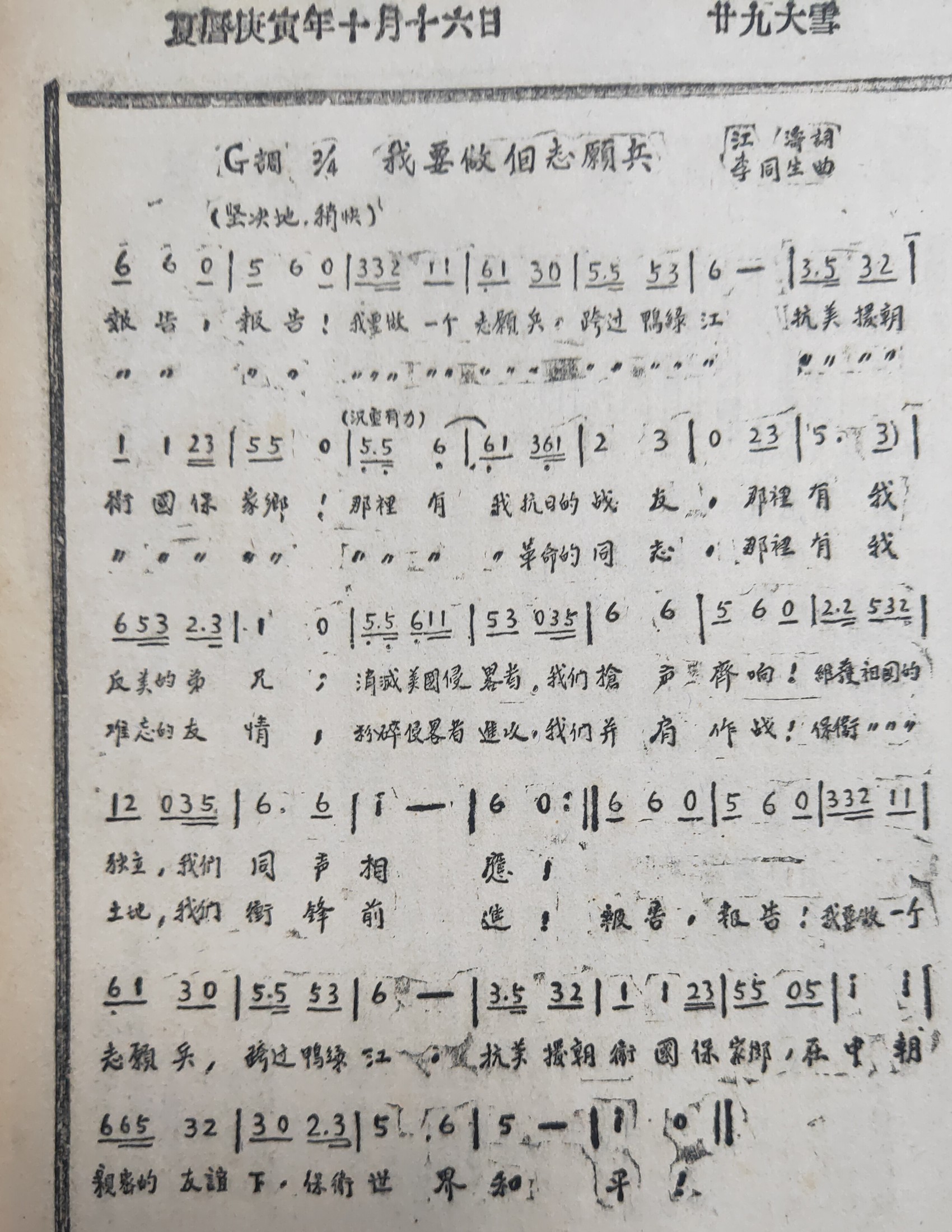 “那里有我抗日的战友,那里有我反美的弟兄;消灭美国侵略者,我们枪声齐响!……”