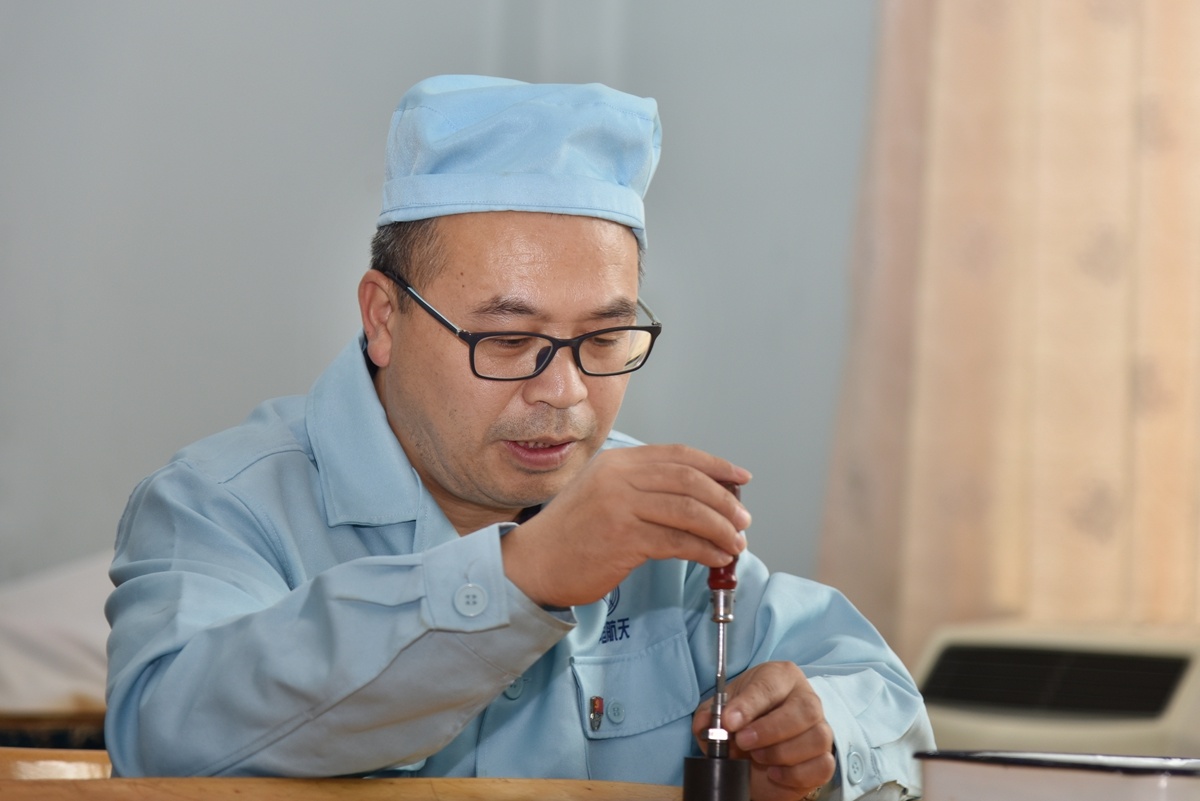 四川航天烽火伺服控制技术有限公司装配技师方小忠正在装配快卸充气嘴。刘涛/摄