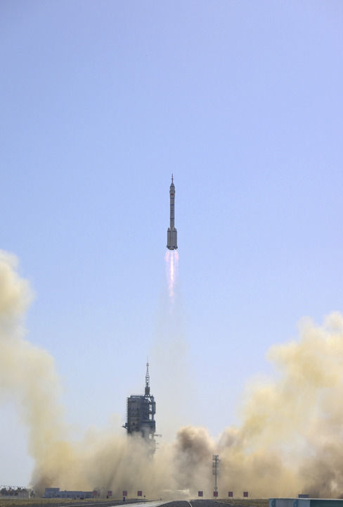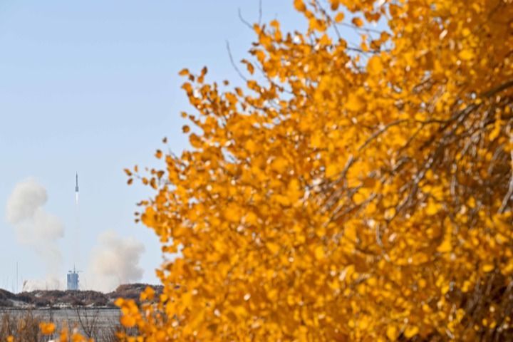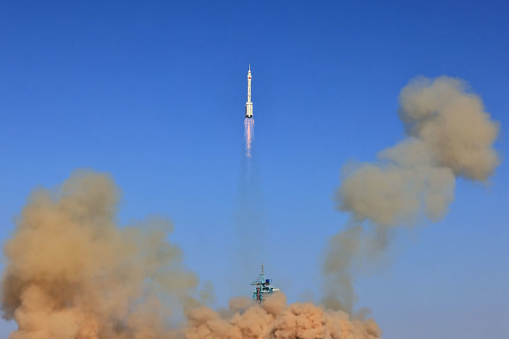 ↑10月26日11时14分,搭载神舟十七号载人飞船的长征二号F遥十七运载火箭在酒泉卫星发射中心点火发射。约10分钟后,神舟十七号载人飞船与火箭成功分离,进入预定轨道,航天员乘组状态良好,发射取得圆满成功。新华社记者 任军川 摄