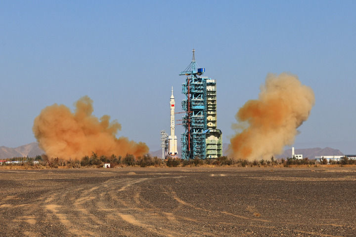 ↑10月26日11时14分,搭载神舟十七号载人飞船的长征二号F遥十七运载火箭在酒泉卫星发射中心点火发射。约10分钟后,神舟十七号载人飞船与火箭成功分离,进入预定轨道,航天员乘组状态良好,发射取得圆满成功。新华社记者 李刚 摄