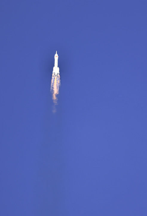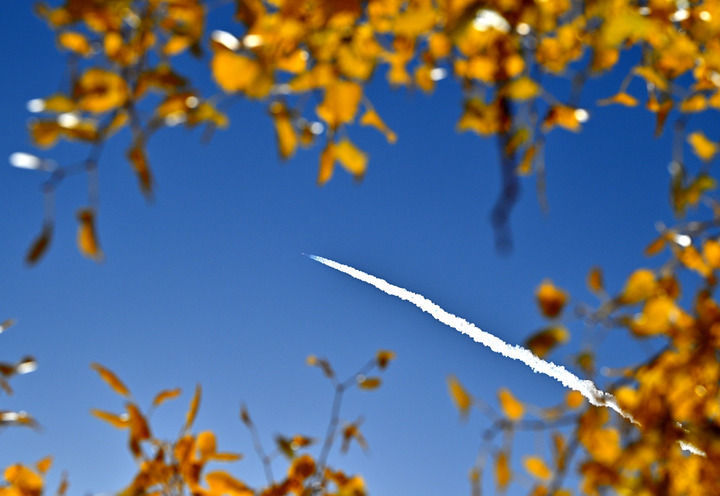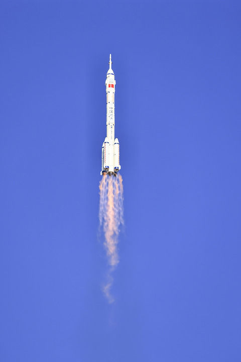 ↑10月26日11时14分,搭载神舟十七号载人飞船的长征二号F遥十七运载火箭在酒泉卫星发射中心点火发射。约10分钟后,神舟十七号载人飞船与火箭成功分离,进入预定轨道,航天员乘组状态良好,发射取得圆满成功。新华社记者 连振 摄