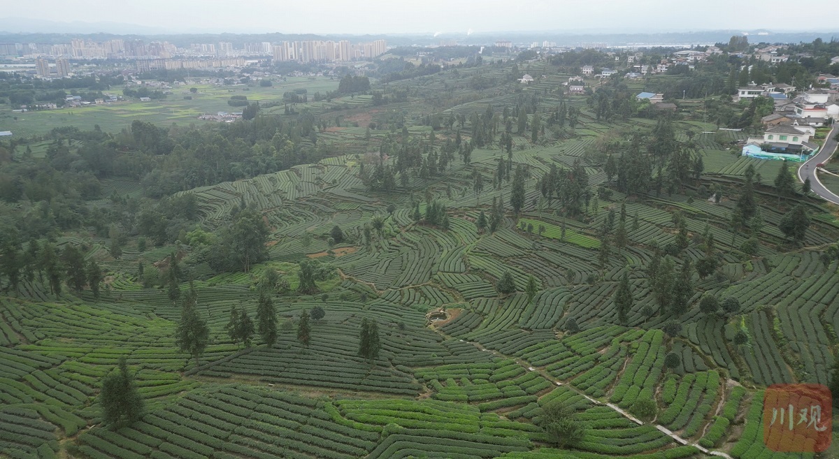当天,记者一行人驱车驶过逶迤的公路来到青杠坪村,这里的万亩生态茶园远近闻名。站在青杠坪上茶山驻足眺望,高楼林立的洪雅县城尽收眼底;俯瞰近处,烟水茫茫的万亩梯田茶山就在脚下。