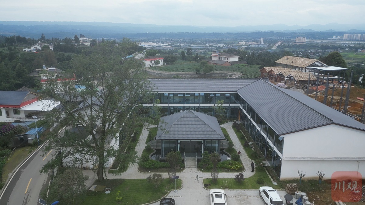 在“青杠坪·茶客空间”,川西风格的民宿点缀在茶园之间,盖碗茶式“两山养研中心”与四周景色融为一体,造型独特的“生命艺术馆”高耸其间。