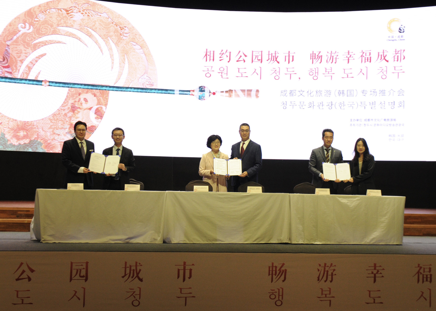 据悉,韩国一直以来都是成都重要的旅游客源地。今年年初,中日韩三国陆续启动了2023东亚文化之都的文化交流活动。随着文化和旅游部持续发布出境团队游国家和地区名单,中日韩三国之间的旅游交流进一步升温。本次推介会落地达成了多项中韩文旅合作项目,将不断利用成都传统和新兴旅游资源,推动成都入境游人次增长,助力世界旅游名城建设。