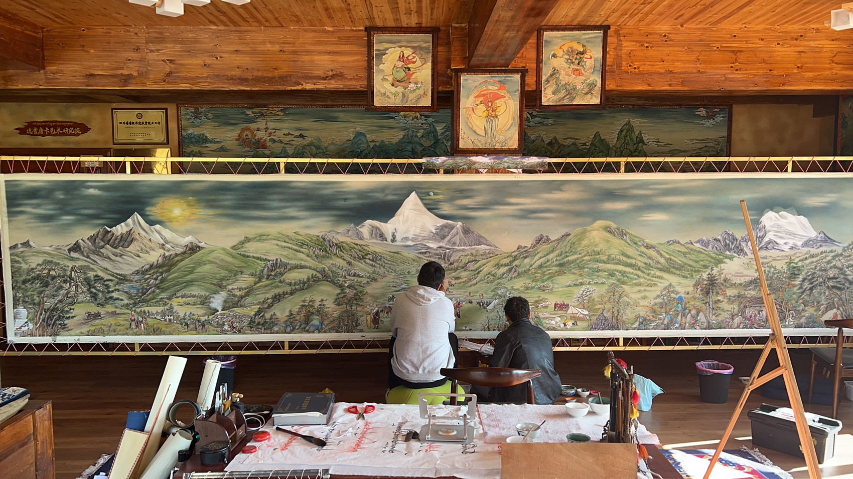 翁都的希望正在成为现实。刘洪透露,在《香巴拉画卷》之后,目前已经创作出近200幅“亚丁画派”风格的新唐卡作品,放在亚丁村非遗画廊销售,让中外游客在亚丁有可以带走的文旅商品,将亚丁之美和新派唐卡艺术传播到五湖四海。