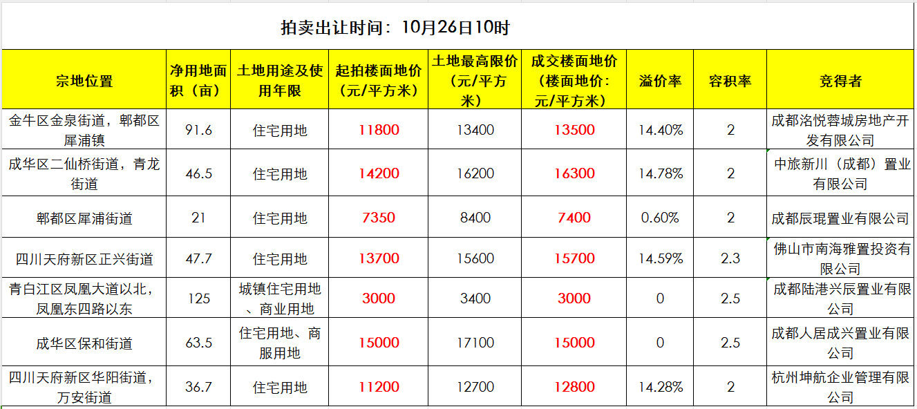 10月26日土拍成交详情