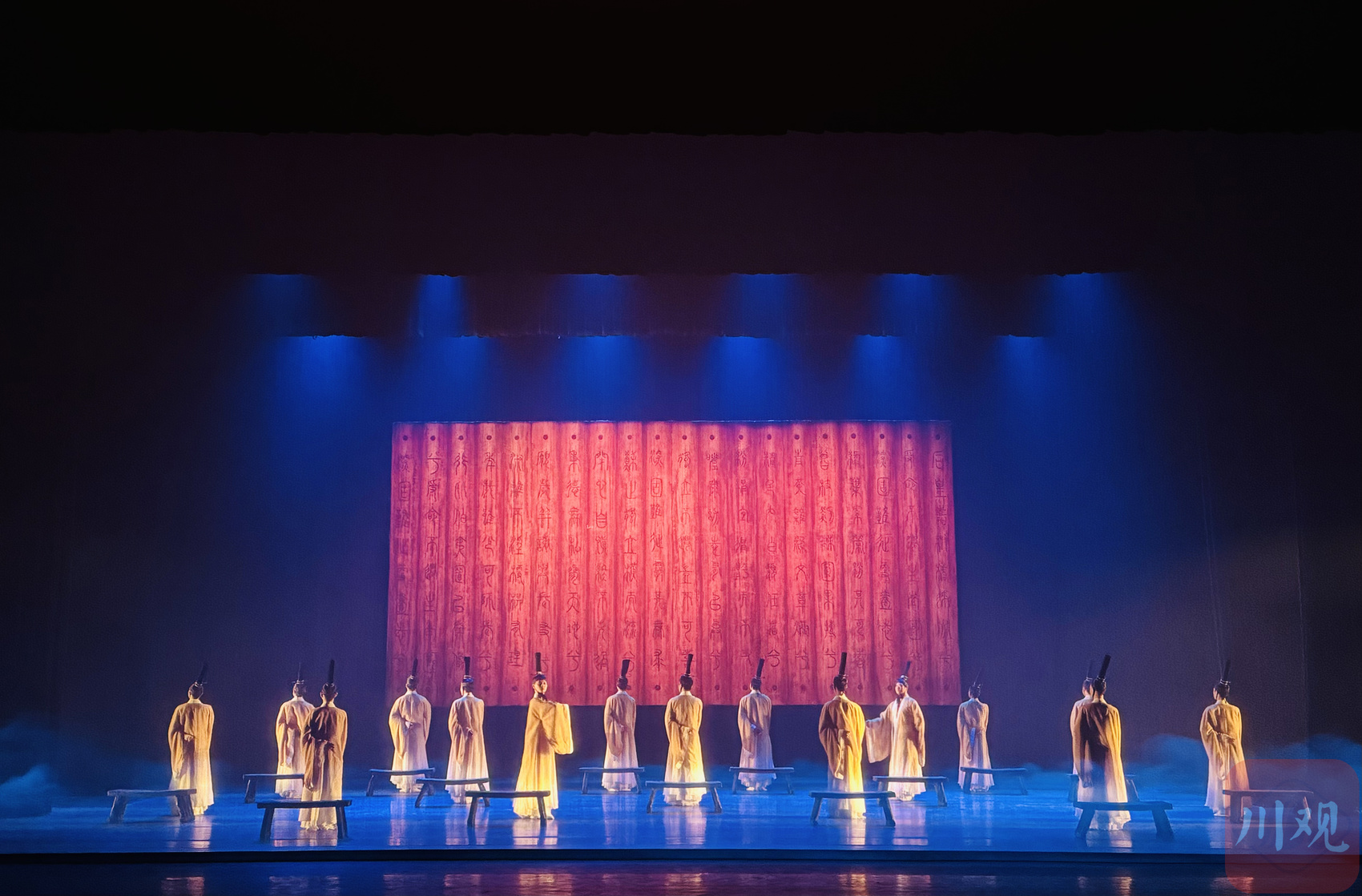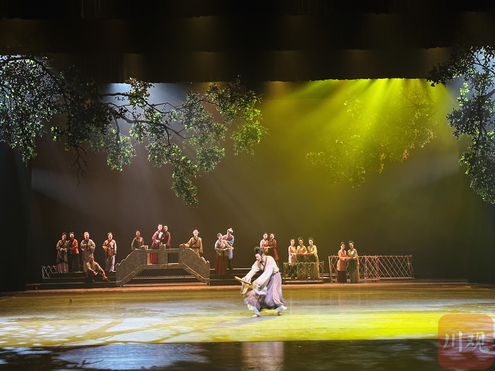 随着一卷简牍缓缓打开,屈子、婵娟、宋玉等人物悉数出场,一束定点光投射在屈原的身上,挺拔的身姿傲然而立……10月26日晚,郭沫若剧作改编舞剧《屈原》在四川大剧院上演,古琴悠扬声中,虚实交替之间,观众如置身遥远的战国时代。