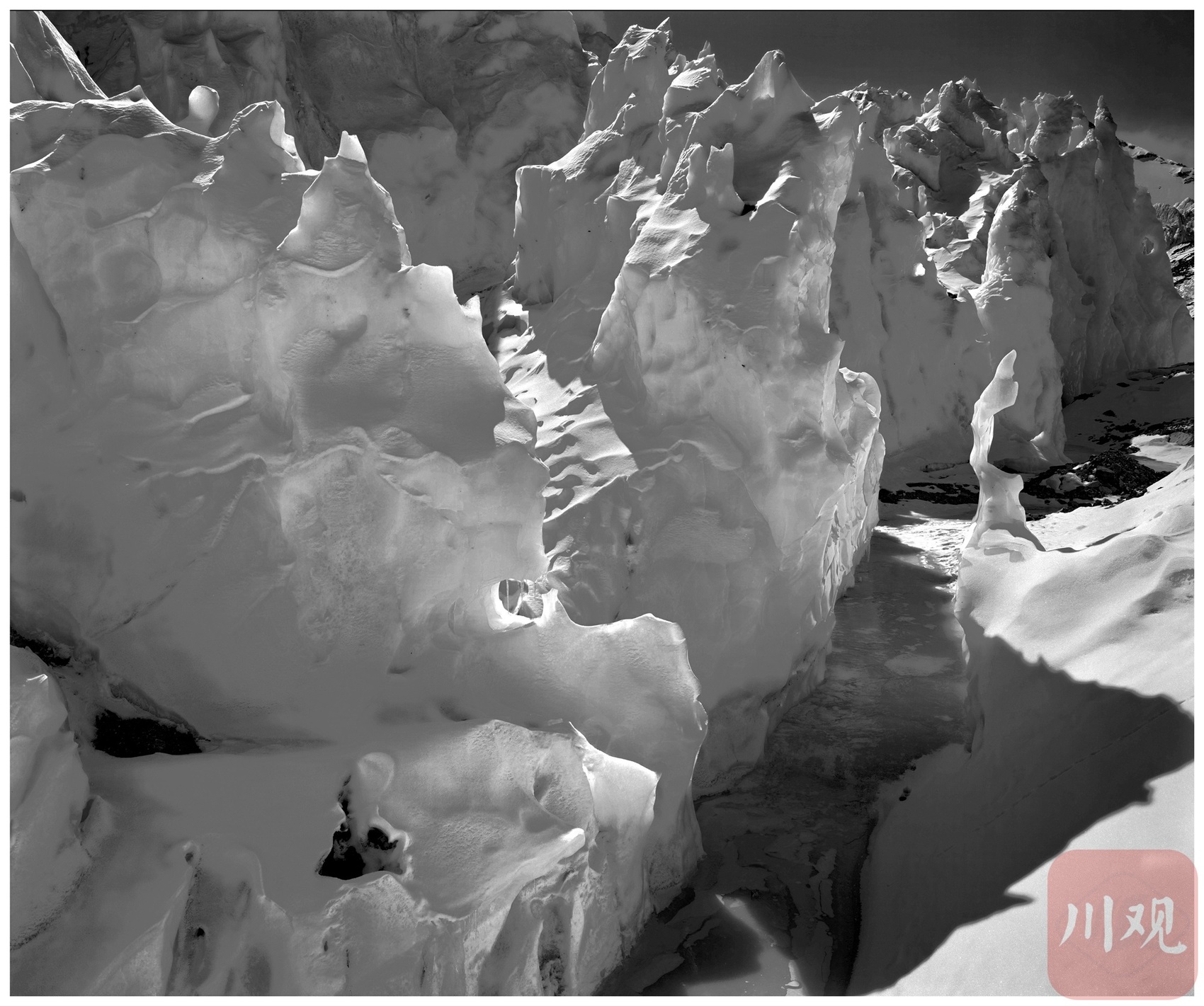 “冰川的体积感、空间感和拍摄难度,为摄影工艺提供了探索的可能。”金平以传统文化和民间手工艺为题材构成“元艺术”景观,或者将极限大自然凝固成像。他亲临喜马拉雅山卓奥友峰和东绒布、西绒布冰川,用极限的光影勾勒出铺展于天地的冰雪世界。他于2018年获得了第十二届中国摄影金像奖。