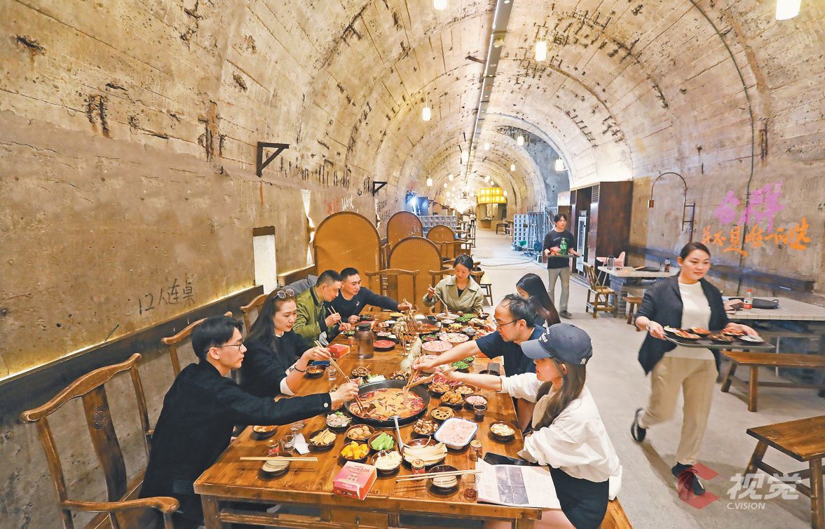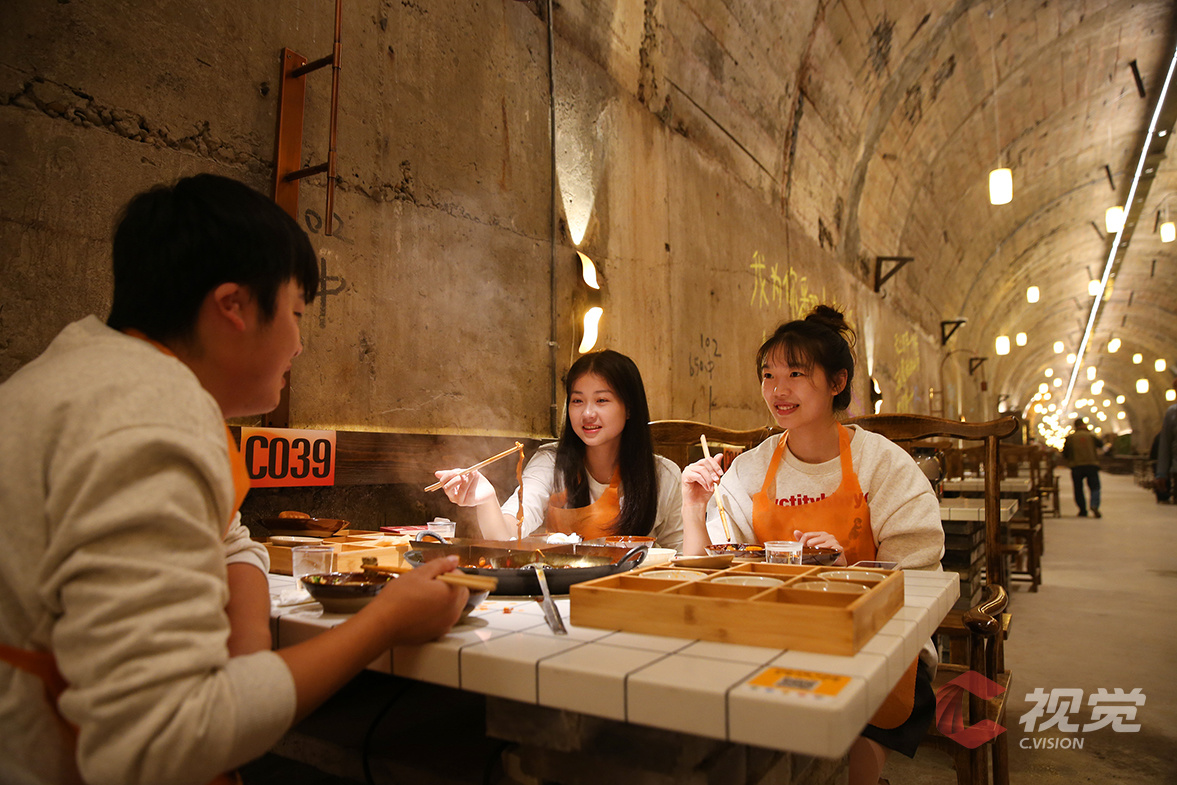 食客在防空洞里享用火锅,感受独特而难忘时光。钟志兵 摄/视觉重庆