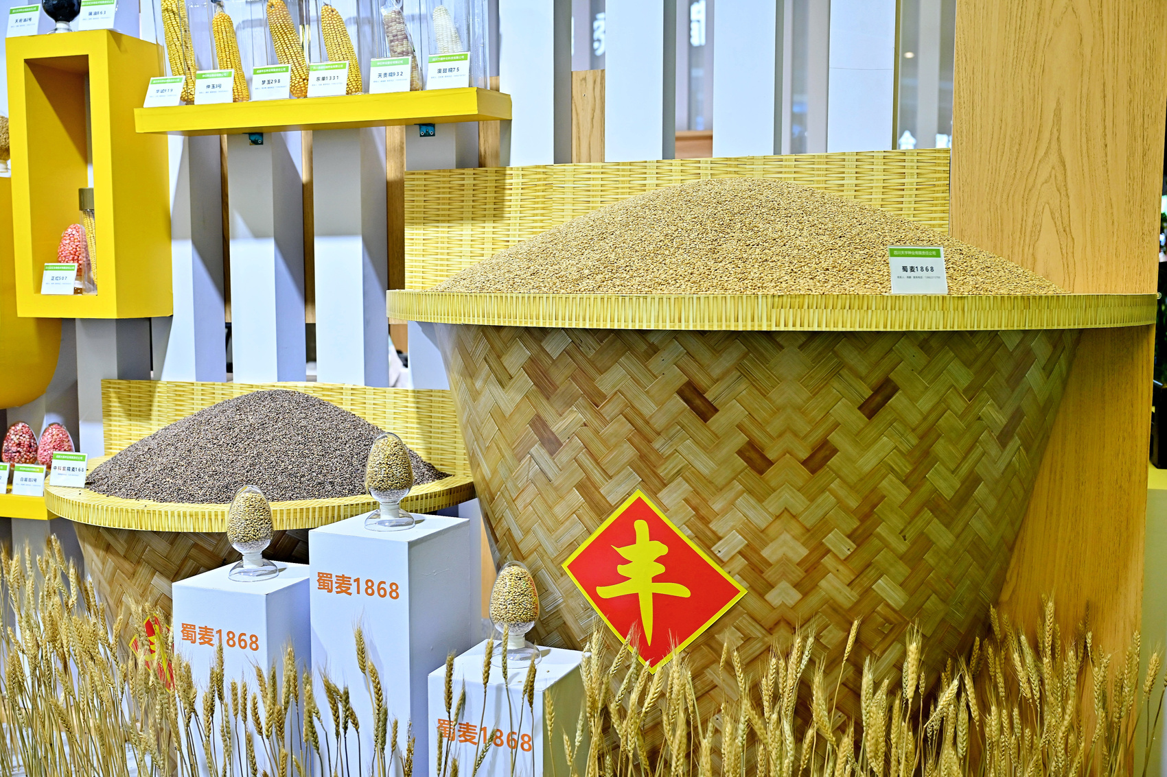 成都各区(市)县也组织了特色农产品参展。四川天府新区打造600平方米农博主题展馆,天府新区农产品区域公用品牌“鹿溪荟”IP旗下众多品牌优选好物来亮相,如鹿溪荟·大米、蜂蜜、火龙果、竹丝茄等。四川现代种业集团打造整面“种子墙”,集中展示玉米、巧克力辣椒、鱼腥草等数十种农作物种子,让市民逛展的同时了解种业相关知识。