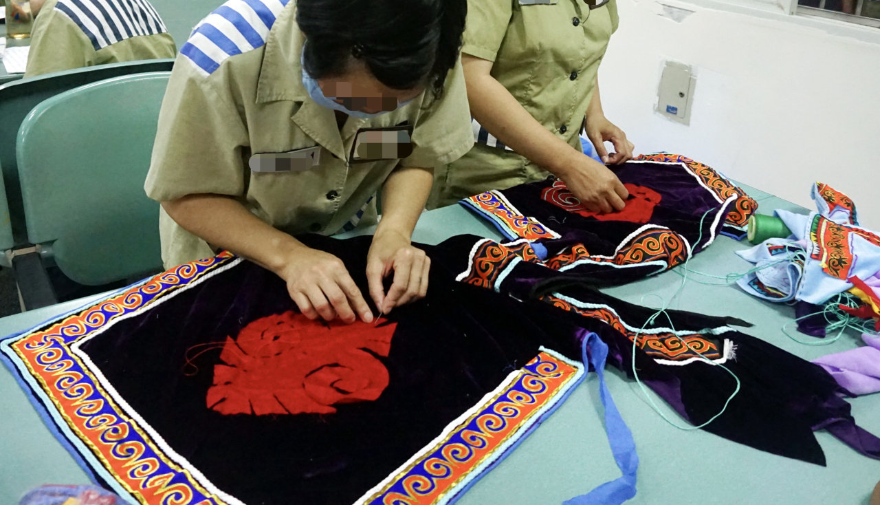 “苼趣工坊”服刑人员彝绣兴趣小组。