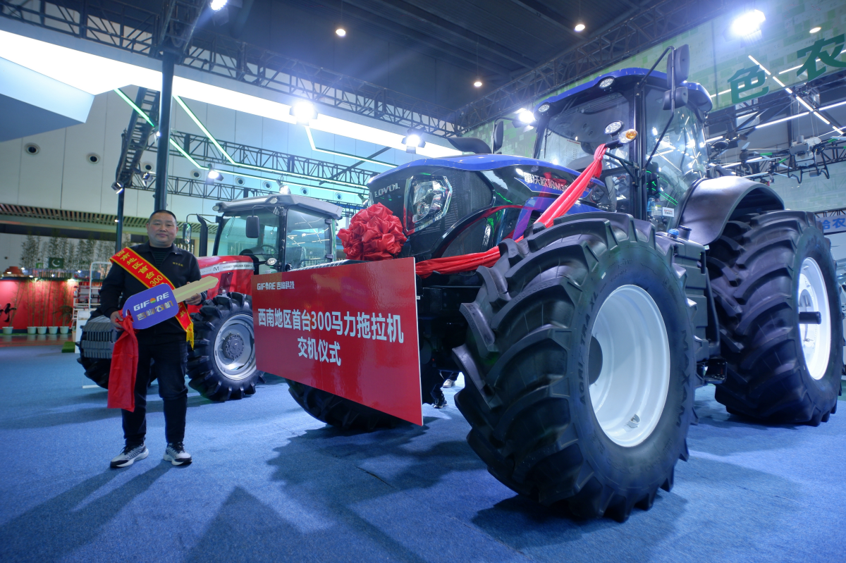 要论第九届四川农业博览会·成都国际都市现代农业博览会的“酷炫”“高科技”担当,非“天府良机馆”莫属。10月28日,随着西南地区引进使用的首台300马力大功率拖拉机钥匙交付至成都硕丰农机合作社负责人胡庭勇手中,“天府良机馆”正式开馆,这一刻也成为我省农业机械化历史的标志性时刻。