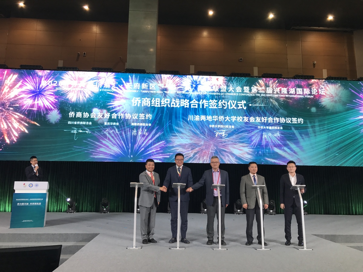 11月17日,2020中外知名企业四川行专项活动之一,“2020侨界川渝菁英汇活动”在成都举办。活动期间,华侨大学四川校友会与华侨大学重庆校友会本着“优势互补、务求实效、共谋发展、战略共赢”的原则,决定共同推进川渝地区发展建设,助力双城经济圈建设,达成并签署合作协议。