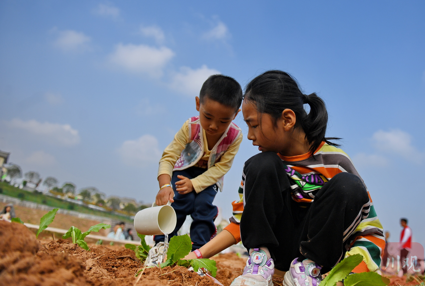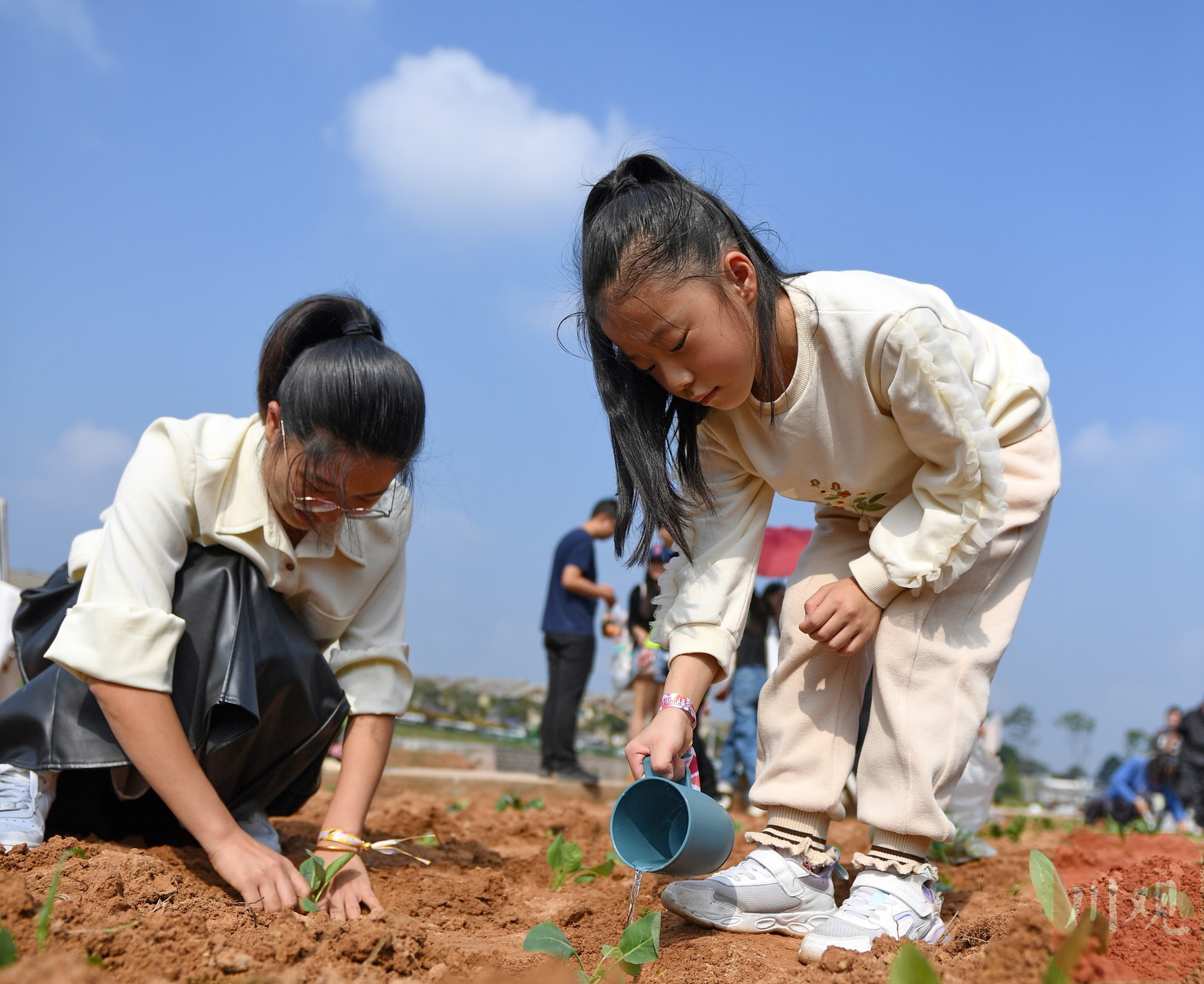在成都市双流区永安镇梨园村“共享菜园”,来自成都的居民在自家认领的田园里体验农耕乐趣。