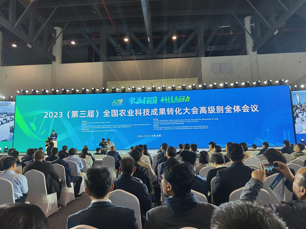 10月27日,中国农业科学院与四川省农业农村厅、成都市人民政府联合主办的第三届全国农业科技成果转化大会在成都开幕。大会以“农业强国 科技驱动”为主题,聚焦粮食安全与农机装备、乡村振兴与农业产业、绿色农业与食品产业、农业科技成果转化与知识产权等领域,围绕科技协同创新、成果转化先进经验与模式等研讨交流、分享经验、共谋思路。
