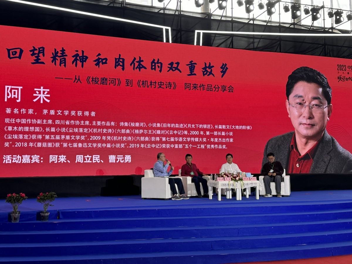 10月28日,著名作家、茅盾文学奖得主阿来携作品与著名诗人陈先发、评论家周立民、出版人曹元勇来到黄山书会现场,以“回望精神和肉体的双重故乡——从《梭磨河》到《机村史诗》”为主题,围绕阿来诗歌与小说中饱含诗意的语言以及文字背后的情感力量展开对谈。