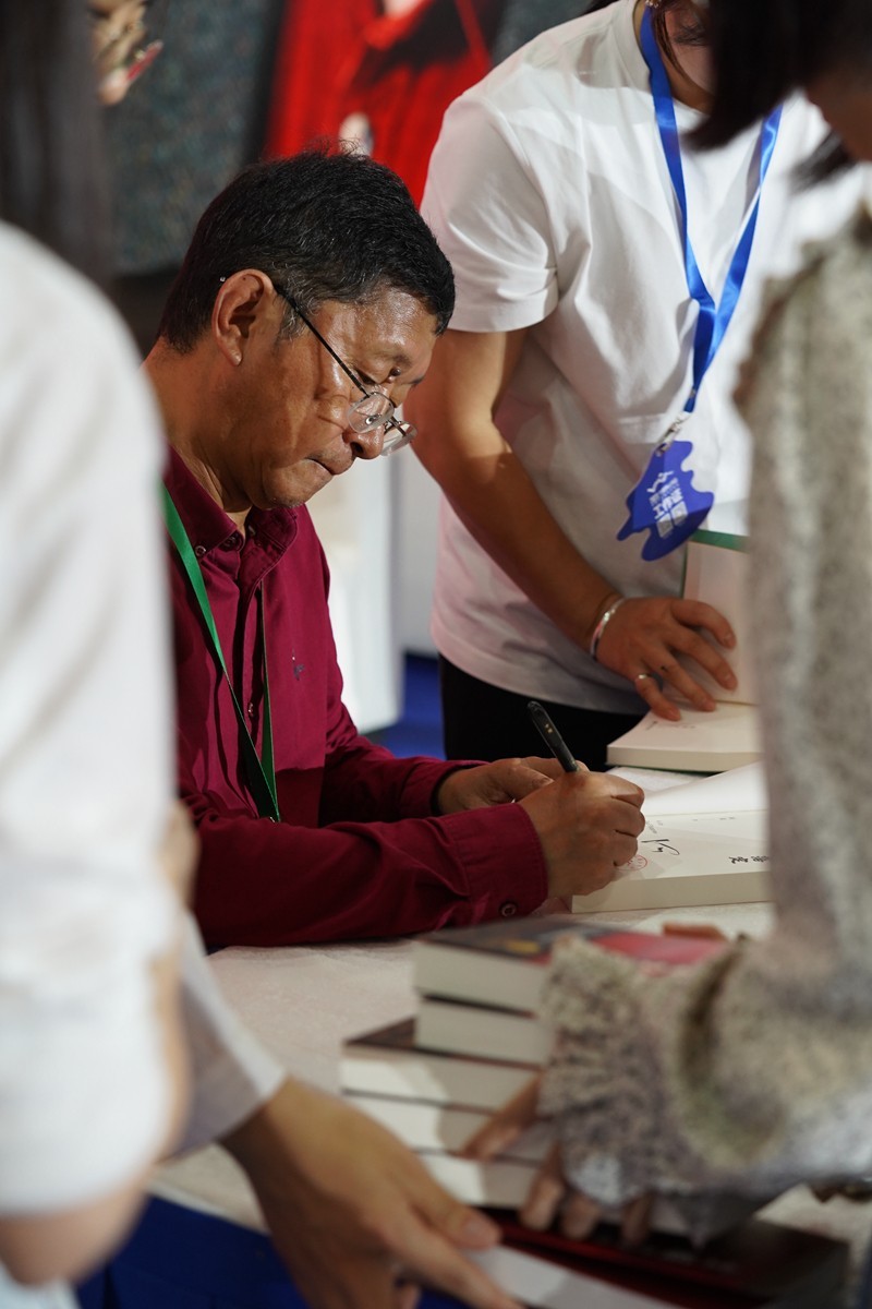 对谈结束后,读者热情高涨,签售队伍足足绕场地一圈,许多读者都表示自己此前非常喜欢阿来的小说,这次是第一次知道阿来诗人的身份,希望通过阅读他的诗集了解他的文学来路。