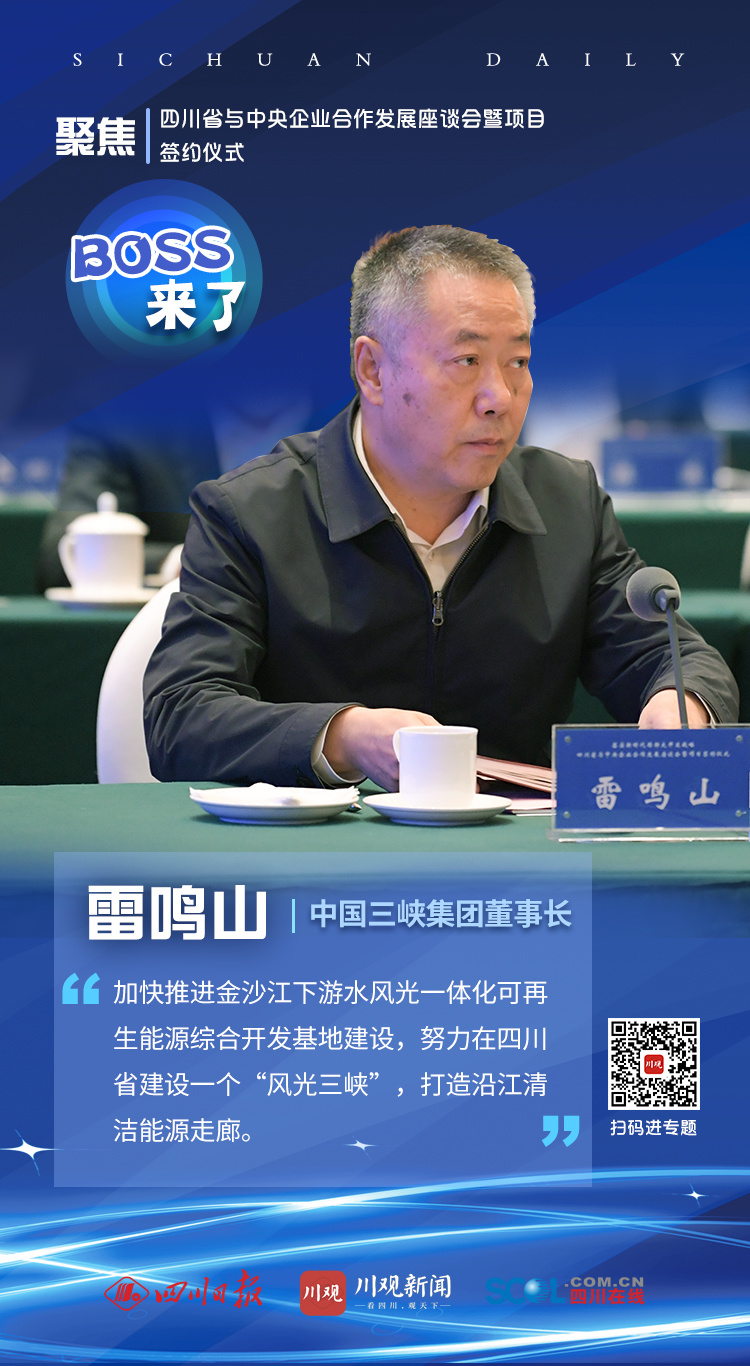 雷鸣山透露,这些年,始终把四川省作为支撑清洁能源和长江生态环保“两翼齐飞”的重要战略区域,成立四川分公司和四川能源投资公司,与四川省开展多层次、宽领域、全方位的战略合作,通过开发金沙江下游四座世界级巨型梯级电站等重大项目,累计在四川省投资超1600亿元,缴纳税费超215亿元。