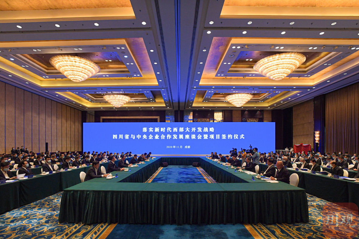 11月17日下午,在四川成都举行的落实新时代西部大开发战略——四川省与中央企业合作发展座谈会暨项目签约仪式上。四川省各级政府及企业与中央企业签署45个项目合作协议,涉及协议金额超3920亿元。