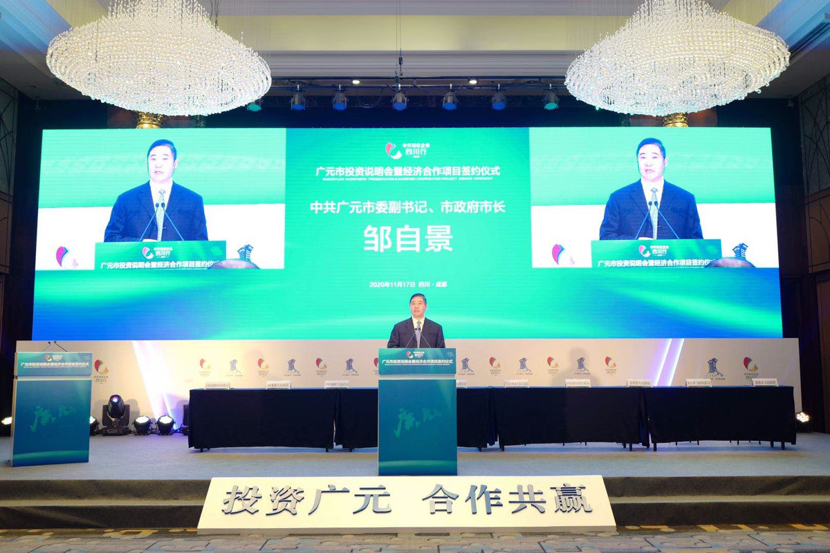 11月17日,2020中外知名企业四川行广元市投资说明会暨经济合作项目签约仪式在成都市举行。签约仪式上,广元市委副书记、市政府市长邹自景现场承诺为签约的项目保障服务。