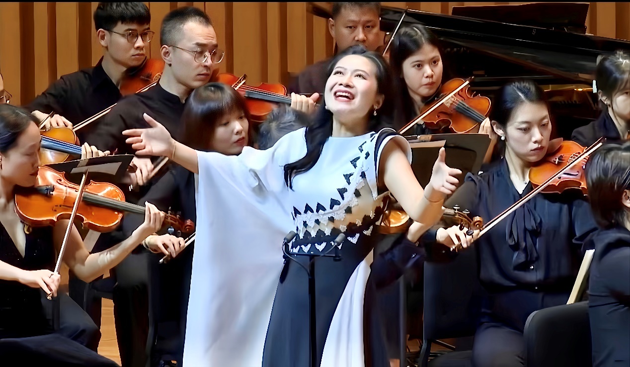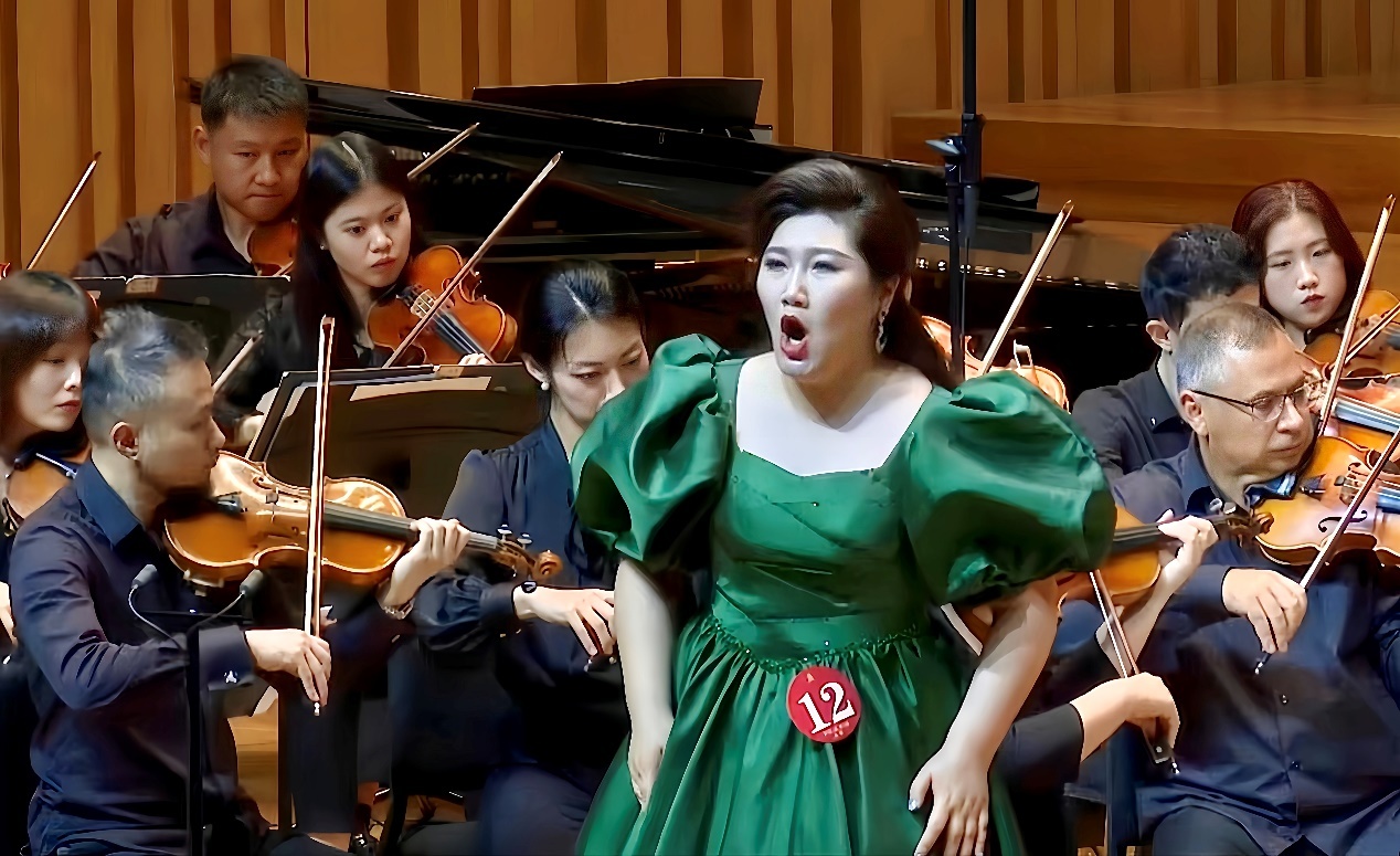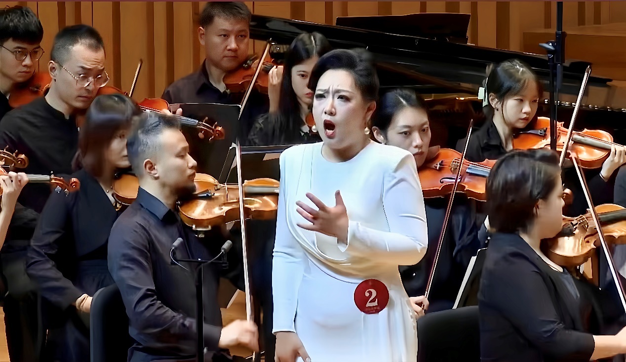 来自中央歌剧院的女高音郝菲,是本次比赛中唯一选择演唱新作品的选手。这是一件极具挑战性的事情,如果不能准确地诠释作品的音乐风格,给评委留下深刻的记忆点,很难获得高分。毫无疑问,郝菲做到了,她运用细腻的音乐处理,赢得了评委的认可,最终敲响金钟。