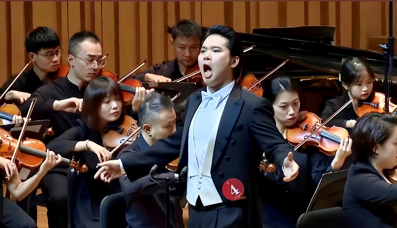 洪振翔在这方面也有着相当出色的表现。特别是他在演唱《运河谣》中张水鹤的咏叹调《不答应也得答应》时,不仅演唱技术娴熟,对角色的演绎也深入人心。他并没有因为比赛而限制了舞台表演,而是准确地演出了张水鹤的恶,赢得了当晚最响亮的掌声和欢呼声。
