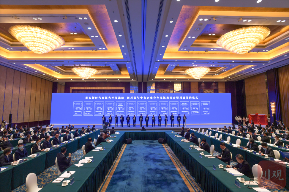 11月17日,落实新时代西部大开发战略——四川省与中央企业合作发展座谈会暨项目签约仪式在成都举行。