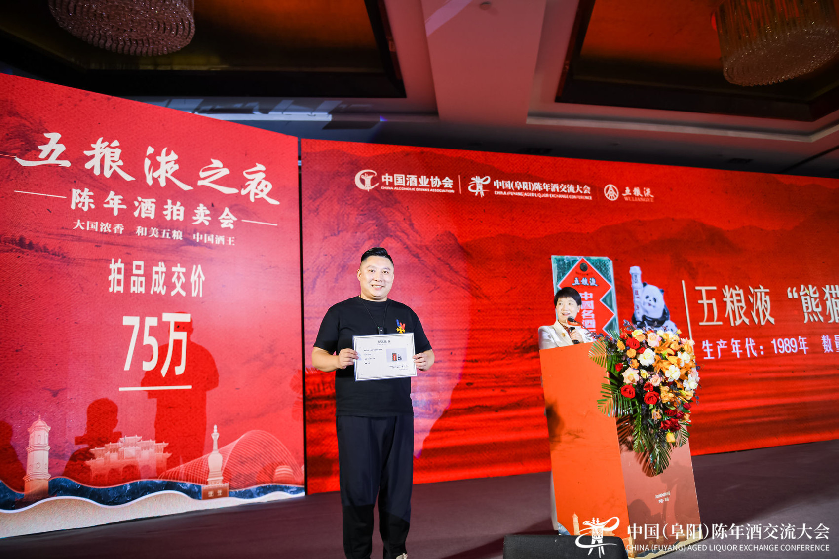 五粮液“熊猫抱竹”造型酒,起拍价20万元,落槌价75万元。