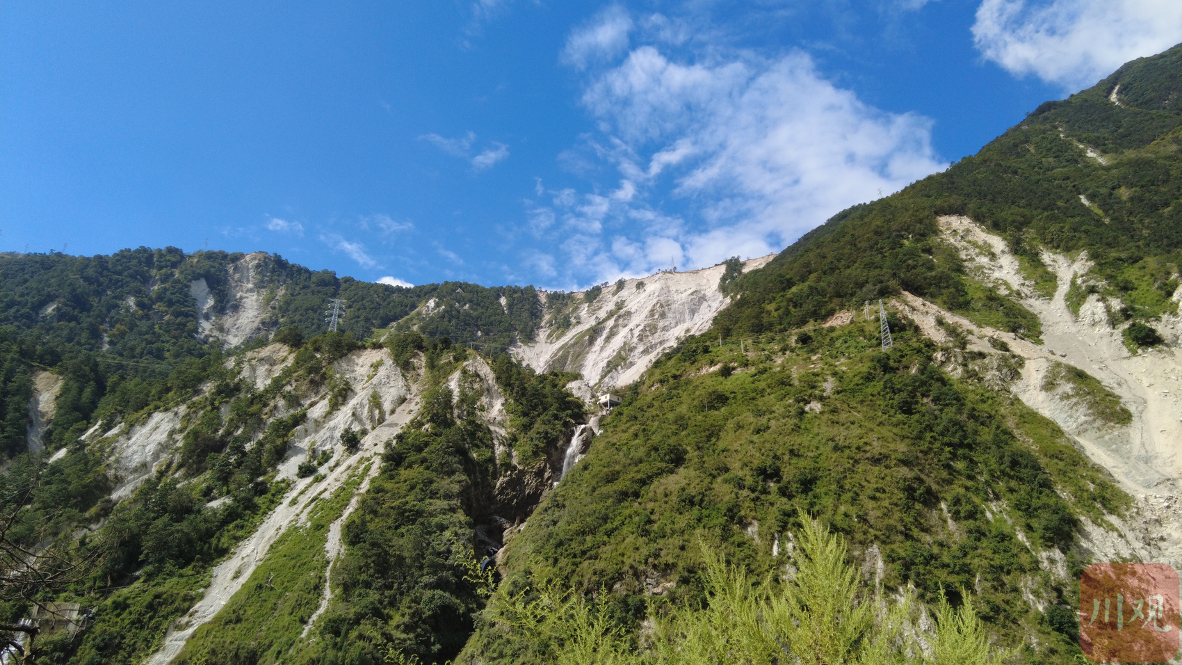 穿过长长的,没有信号、灯光的隧道,待眼睛终于适应强光后,映入眼帘的便是河流两侧一个接一个的滑坡。