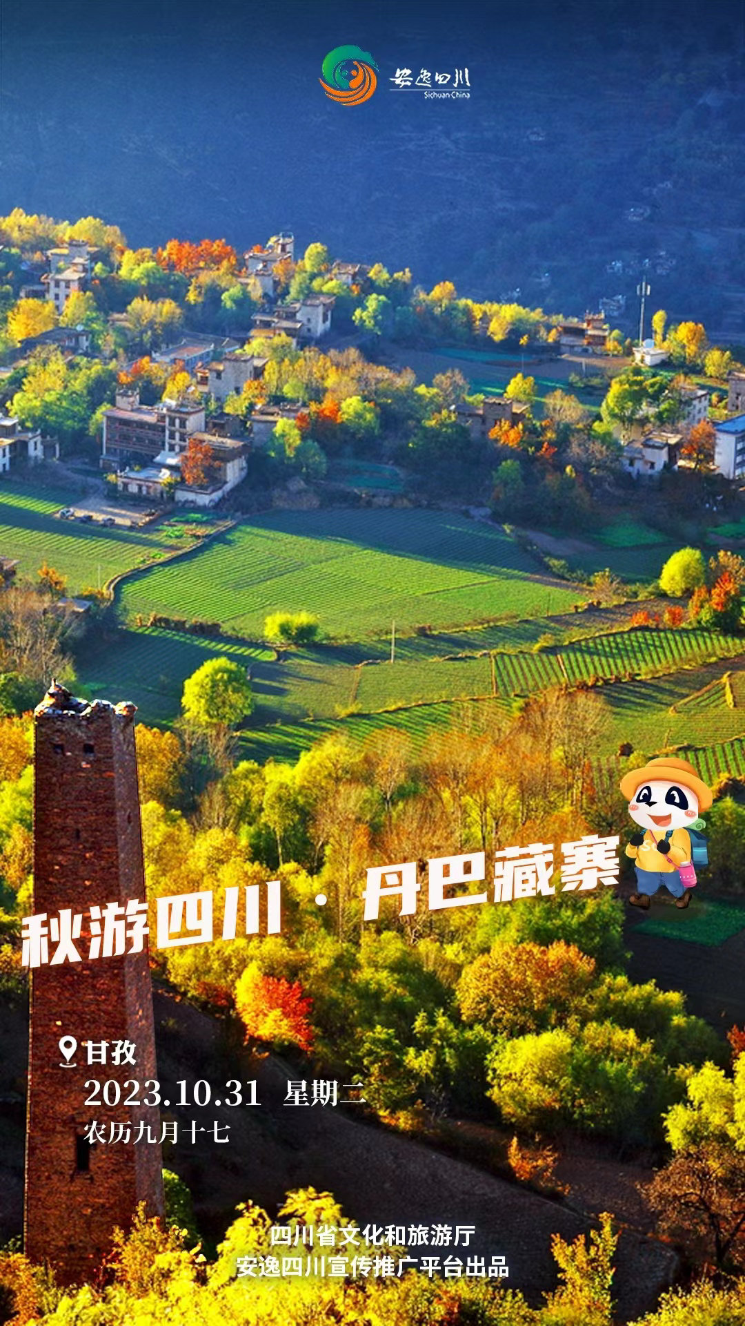 10月31日,星期二。今日安逸四川日历海报“秋游四川”之旅走进丹巴藏寨,感受秋韵美人谷的别样风姿。