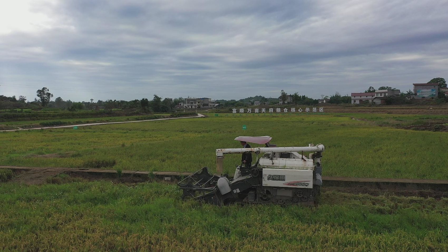 近日,在富顺县代寺镇水稻产业园区内,再生稻正式开镰收割,一台大型收割机在稻田中来回穿梭,金黄色的稻穗迎风起伏,飘来阵阵稻谷的芳香,田间地头一派丰收景象。