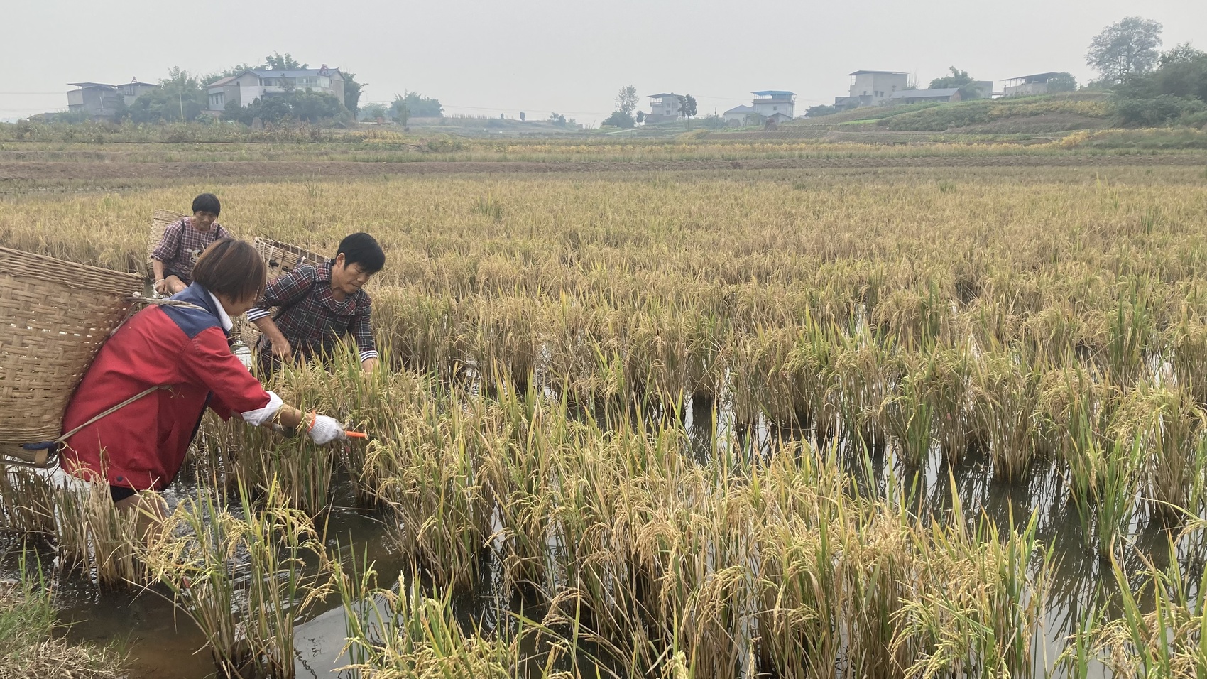在该镇李子村,田间大片的金色再生稻已经成熟,沉甸甸的稻穗压弯稻秆,村民们忙着收割、脱粒,确保颗粒归仓。