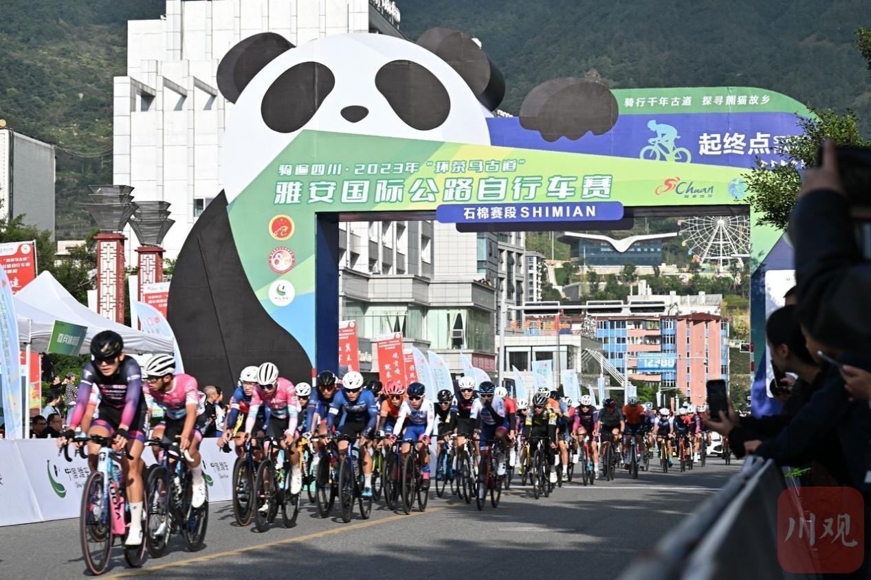 10月28日,俄罗斯选手安德烈穿上熊猫衫登上石棉赛段的冠军领奖台,参加骑遍四川·2023年“环茶马古道”雅安国际公路自行车赛。这场国际赛事上,他和185名来自中国乃至世界各地的选手疾驰茶马古道、爬坡蒙顶山、瞭望大渡河、贡嘎雪山,还能在休息区体验锅庄舞、酥油茶等。