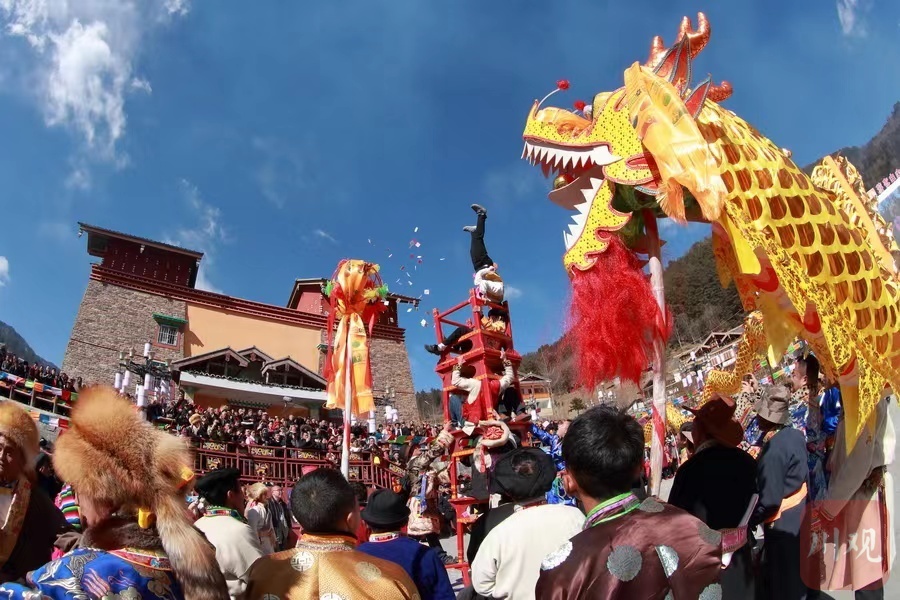 宝兴硗碛藏族乡群众欢庆上九节(黄刚 摄)