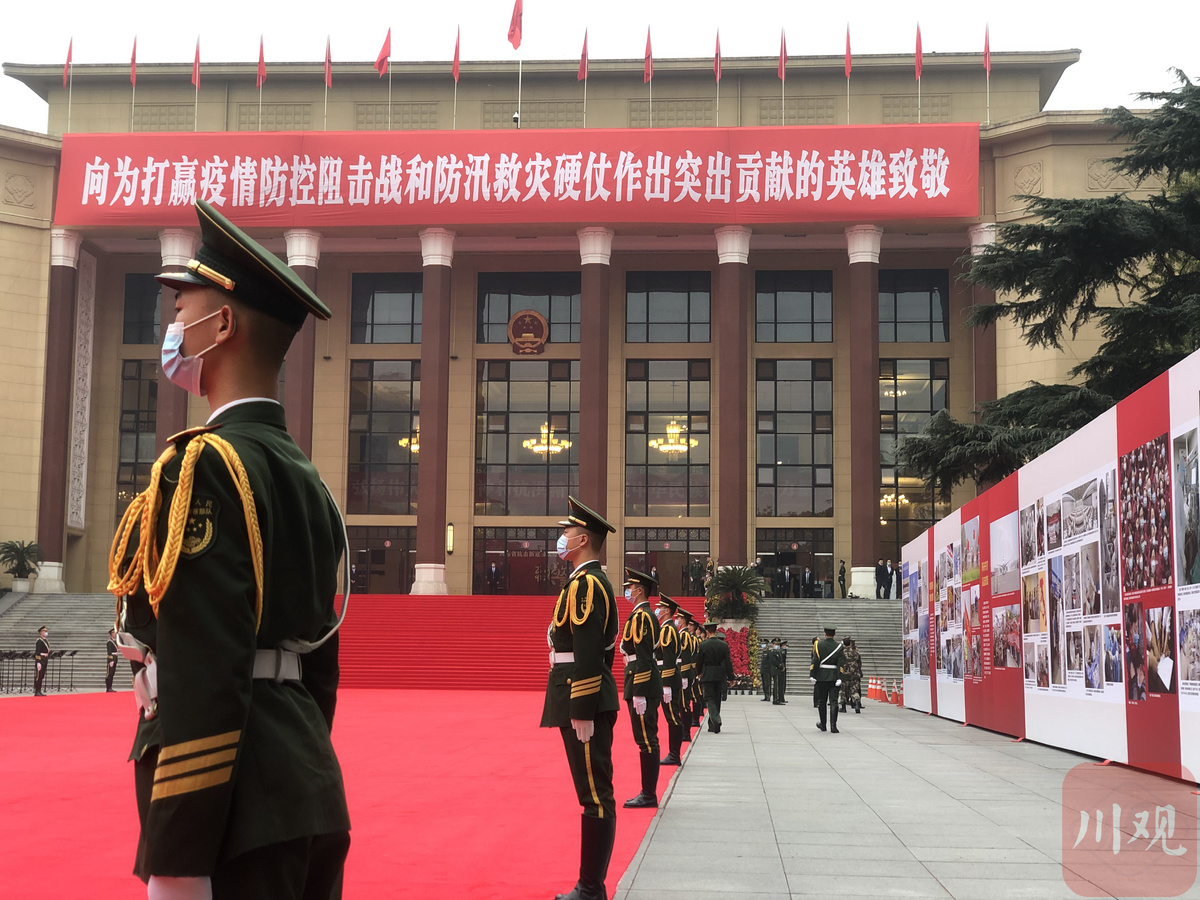 11月17日,四川省抗击新冠肺炎疫情和防汛救灾表彰大会在成都举行。红毯、礼兵、乐团......除了这些对受表彰先进的高规格礼遇,现场还有一个设计吸引了大量关注,就是四川省抗击新冠肺炎疫情和防汛救灾图片展。