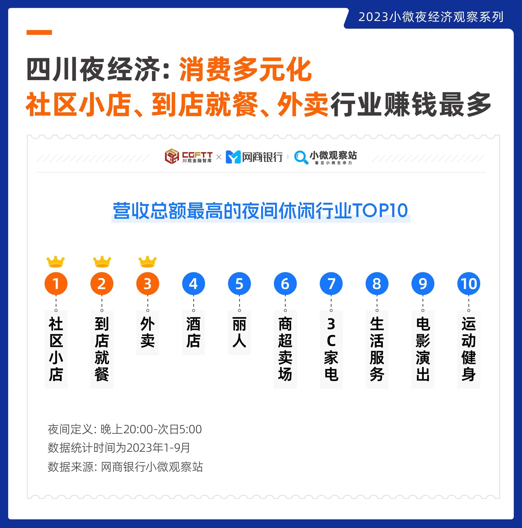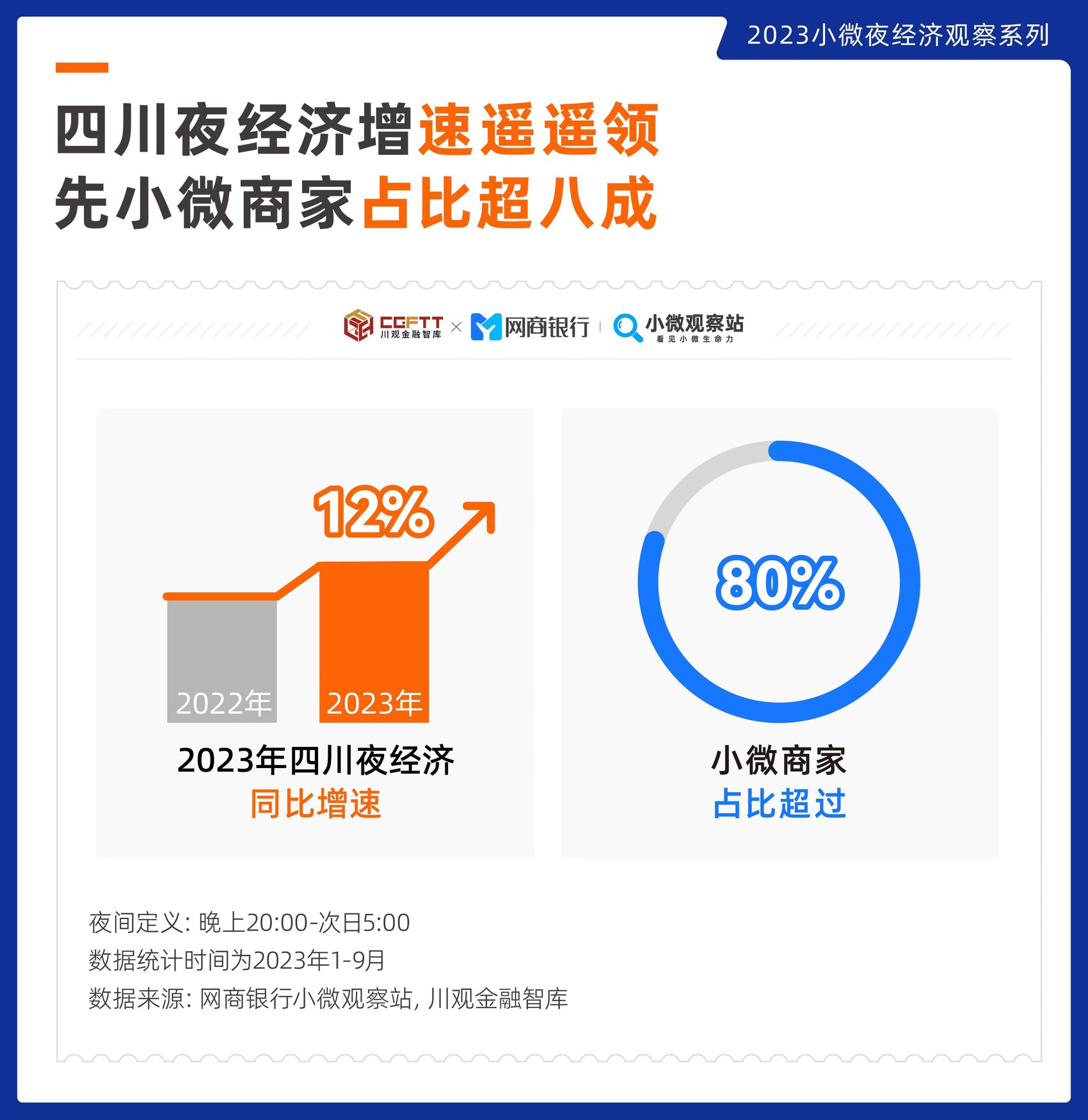 夜经济,小微商家是主力。作为四川一张特色名片,夜经济在撬动消费、提振经济的同时,也关系着本地民生。本篇报告由网商银行小微观察站联合川观金融智库联合发起,用数据深入解析四川夜经济特色,为其更好发展提供观察思路。
