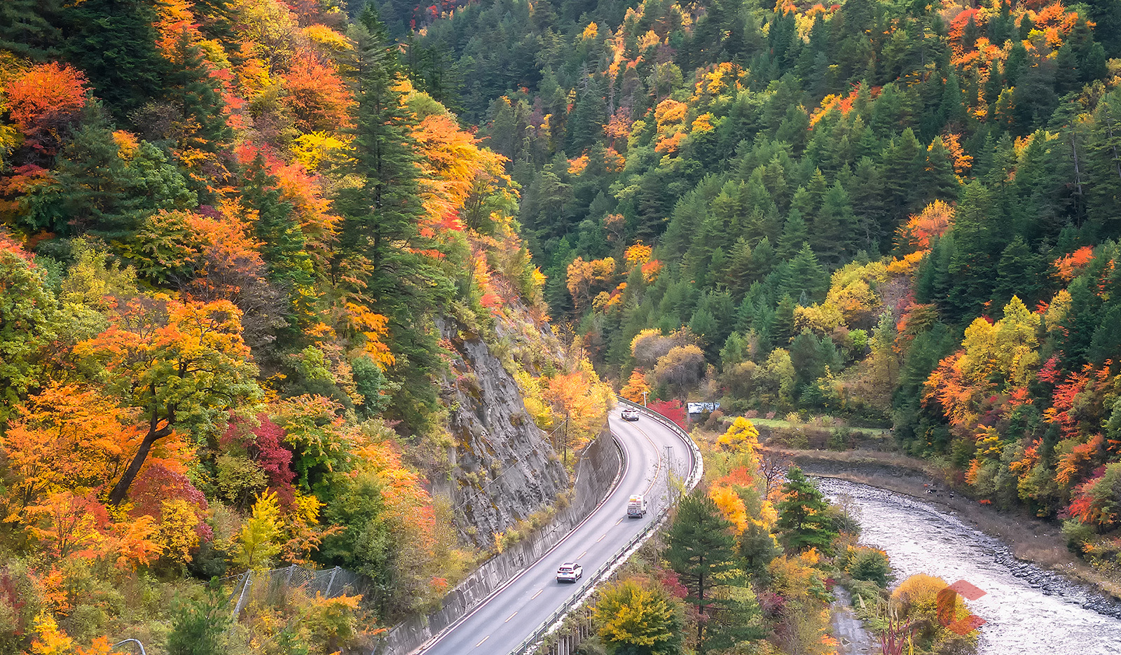 本周,川西彩林进入最佳观赏时间窗口。每年10月中旬至11月上旬,阿坝州理县米亚罗红叶风景区,从河谷到山顶,橘黄、金黄、深红、暗红或紫红色,各种颜色悄然过渡、竞相争艳,目光所及之处,皆是胜景。