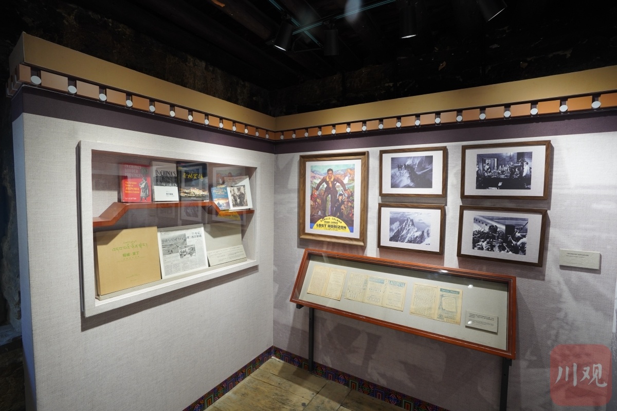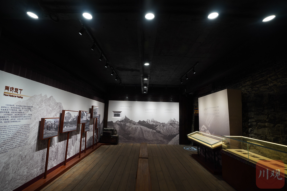 洛克小屋的二楼展厅,根据洛克发表文章和日记中关于曾留宿冲古寺、眺望亚丁村等描述,还原这位植物学家、探险家在冲古寺的生活及工作场景。
