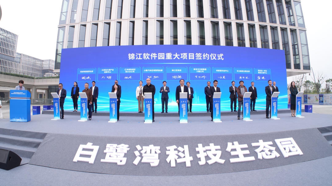 锦江软件园重大项目签约仪式同步举行,中国联通智能网联研究院、华为创新中心、中信科区域创新中心、百度飞桨(成都)人工智能产业赋能中心、电子科大医工融合产业创新中心等16个重大项目签约落户锦江软件园。