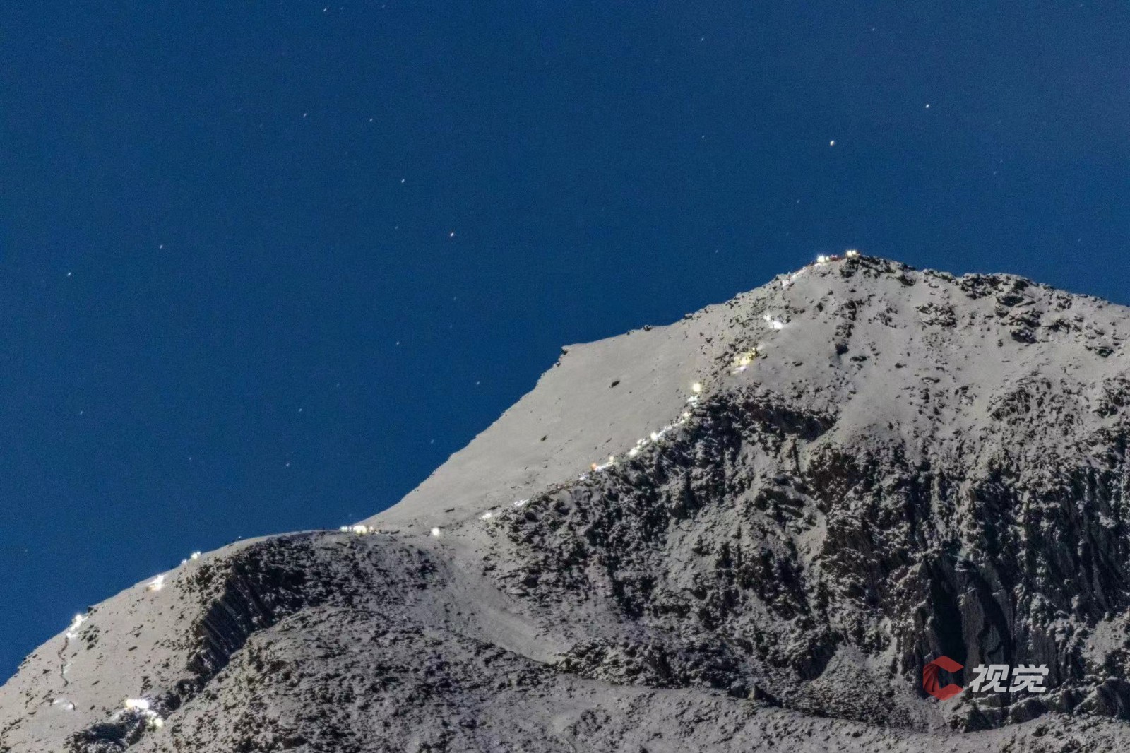 近日,经国务院批准,自然资源部、国家林业和草原局公布贡嘎山、四姑娘山、螺髻山、光雾山、狮子王、格聂山、央迈勇、仙乃日、夏诺多吉9座山峰的高程数据,包括“蜀山之王”贡嘎山、“蜀山皇后”四姑娘山在内的多座雪山“变矮了”。10月30日清晨,C视觉摄影师田相和在猫鼻梁远眺四姑娘山大峰,用30秒延时视频,记录下攀登四姑娘山大峰的登山景观,从凌晨三点至七点,数百人接续攀登,手电和头灯的亮光如同一条灯带,闪耀在浩瀚的星空之下。