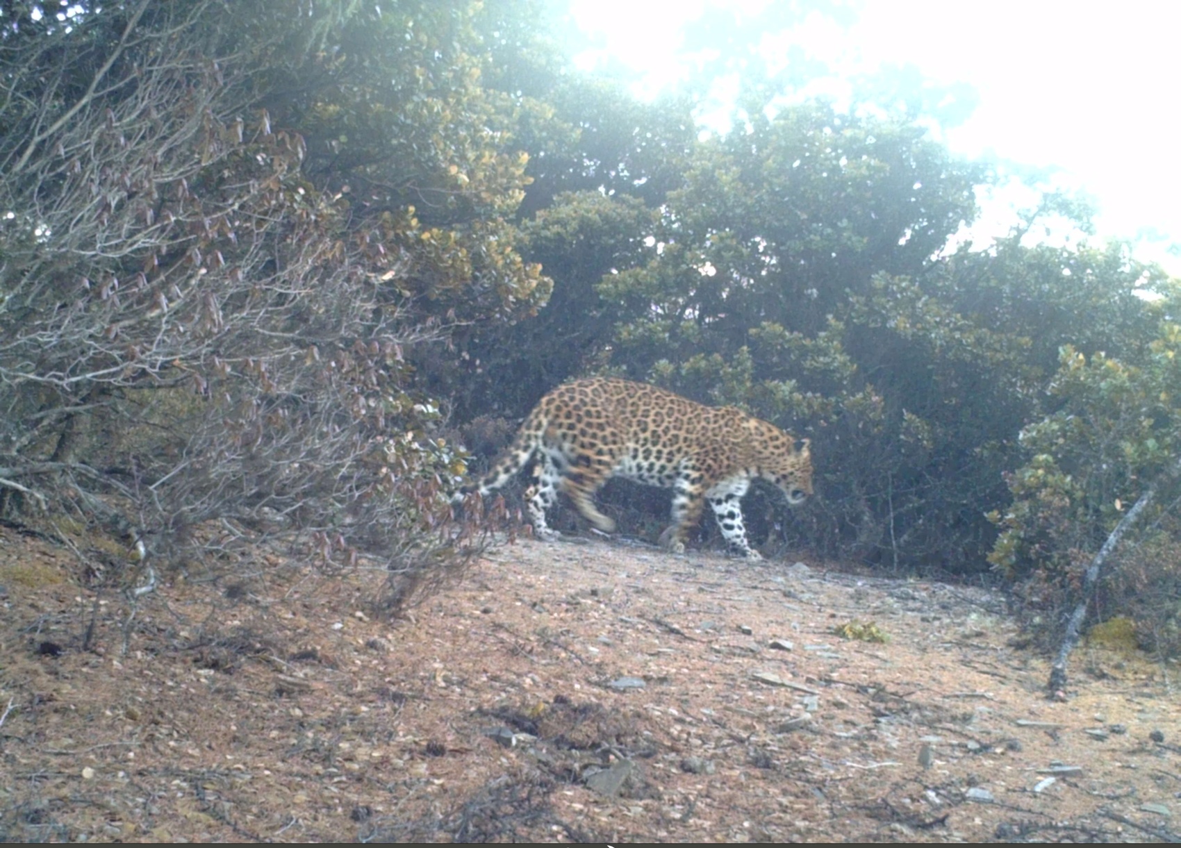 红外相机拍摄下的金钱豹照片。