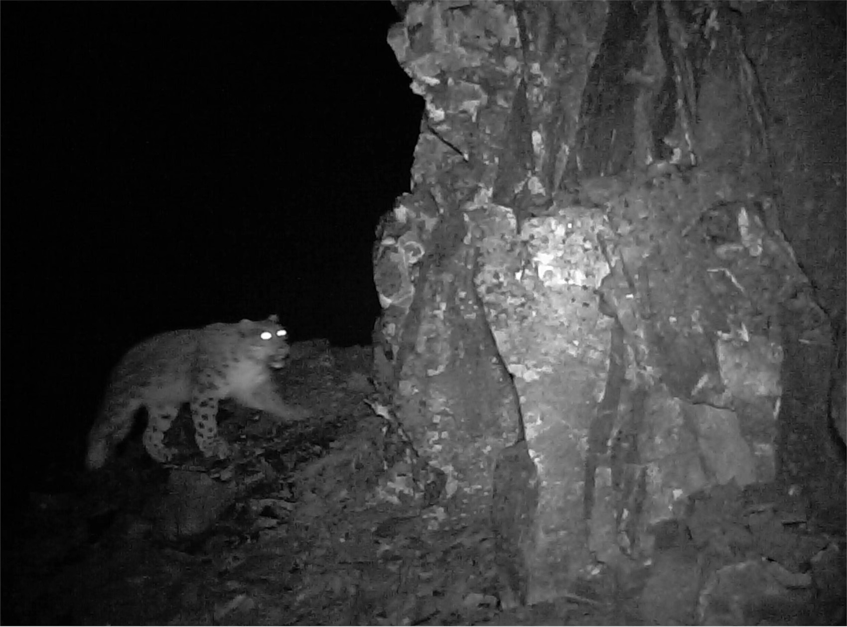 红外相机拍摄下的雪豹照片。
