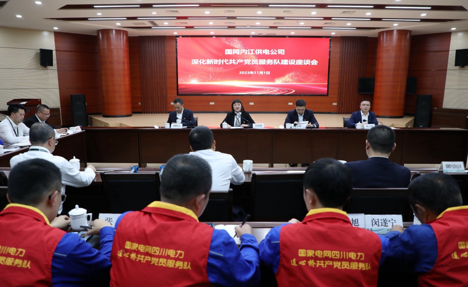 座谈会上,还为多年来衷心践行“有呼必应、有难必帮”共产党员服务队宗旨的队员,颁发“终身荣誉队员”。举行新人入队仪式,由“荣誉队员”为新入队队员授胸牌,并共同承诺宣读国网公司共产党员服务队公约。同时,内江五个区县供电公司党委书记分别就围绕如何做好、做深、做实“五大甜蜜服务”作交流发言。