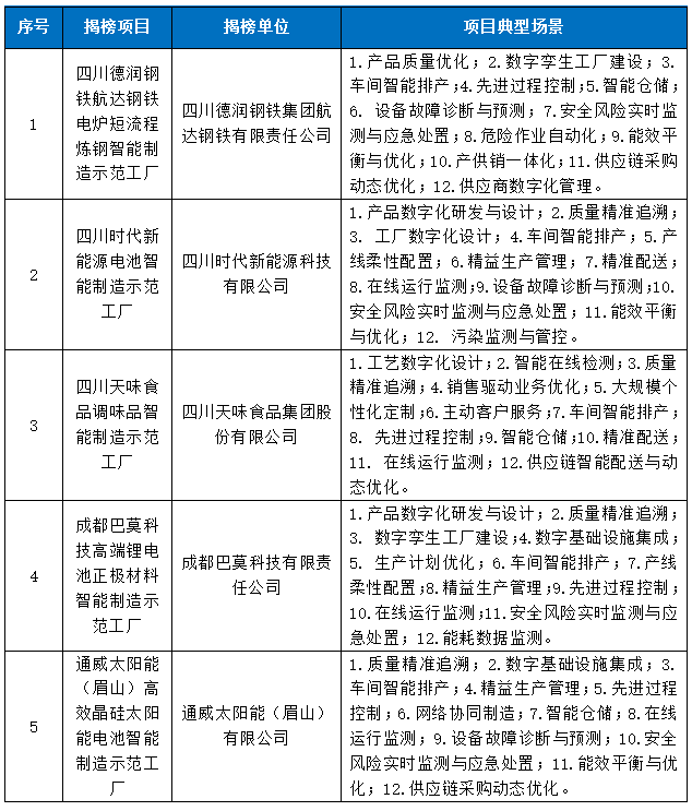 2023年度智能制造示范工厂揭榜单位公示名单(四川上榜企业)