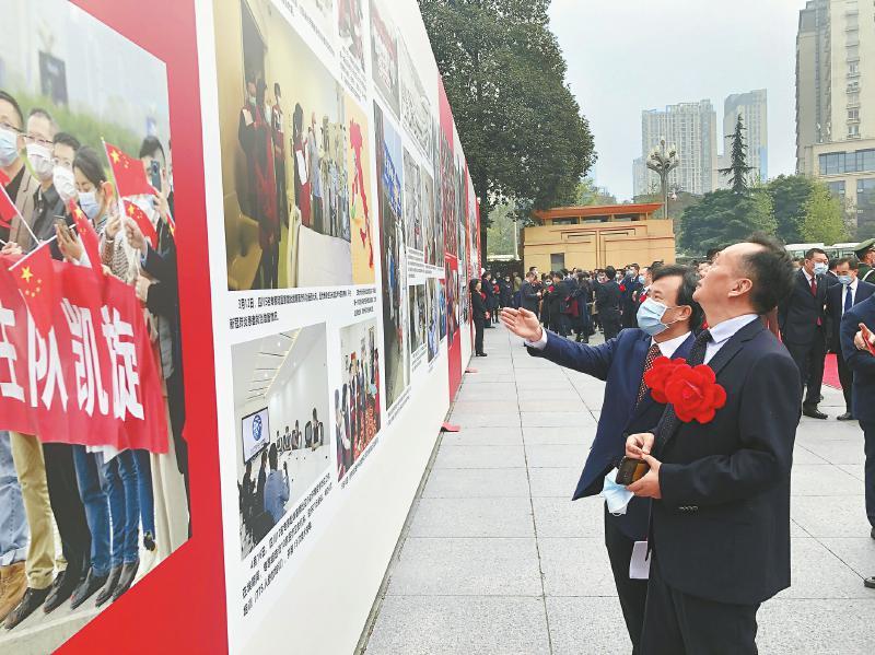 “右边第二个人就是我,虽然穿着防护服别人看不出来,但看到自己照片被选上很开心。”四川大学华西医院重症医学科副主任医师尹万红说,图片展一路看下来,是回忆,是致敬,更是对今后干事创业的一种激励。